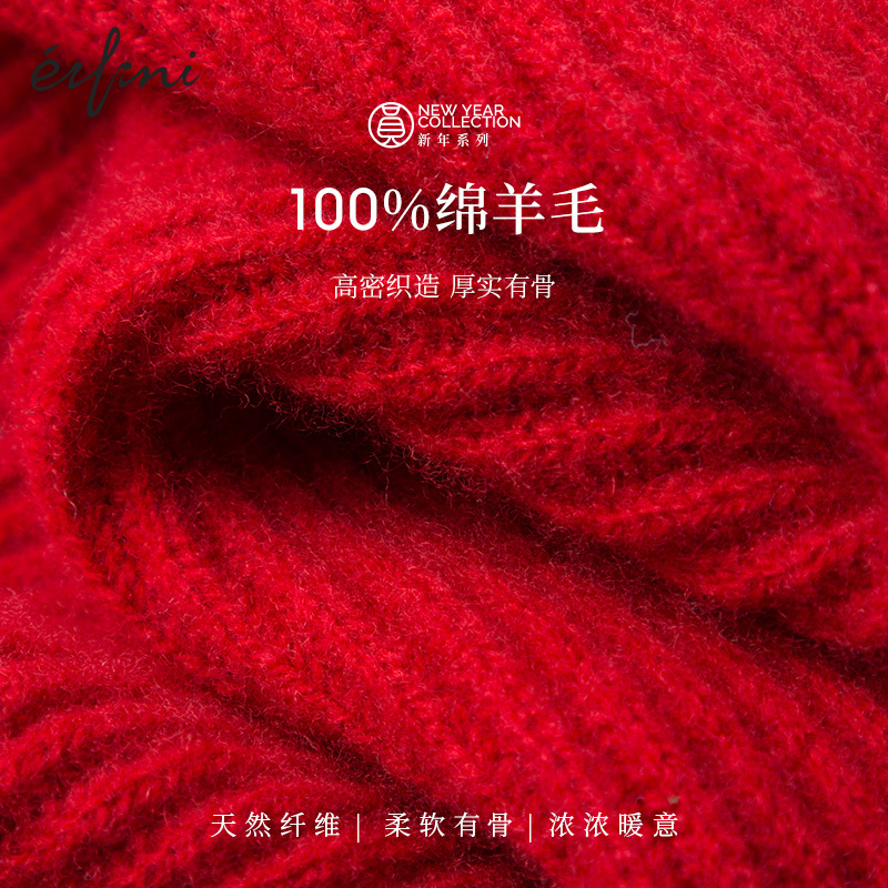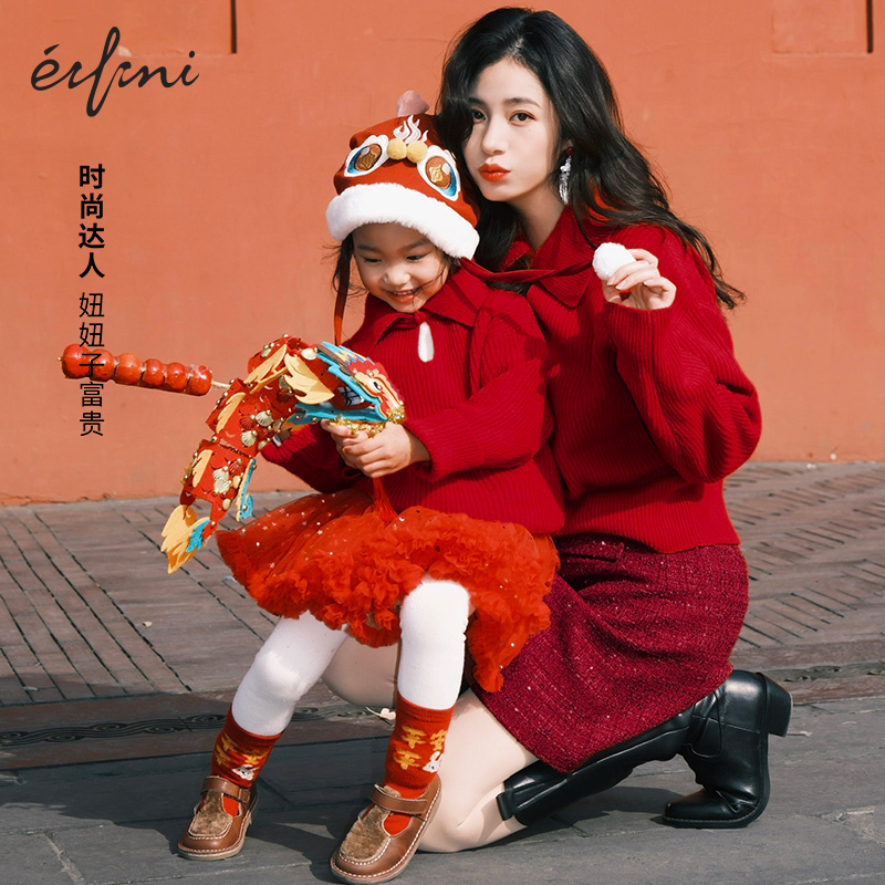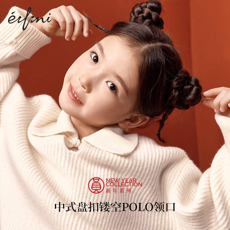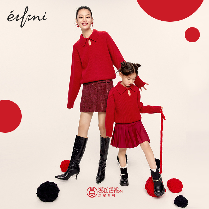 伊芙丽outlets店100%绵羊毛针织衫春秋毛衫翻领套头亲子装上衣女