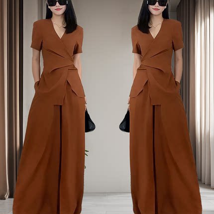 御姐时尚套装女夏季新款洋气减龄薄款高级感短袖外套阔腿裤两件
