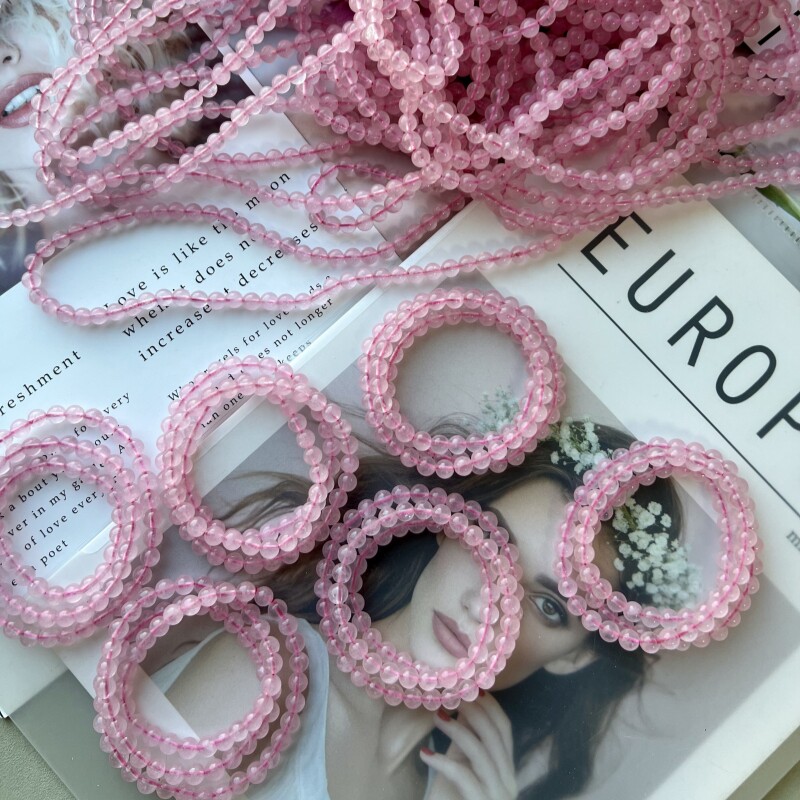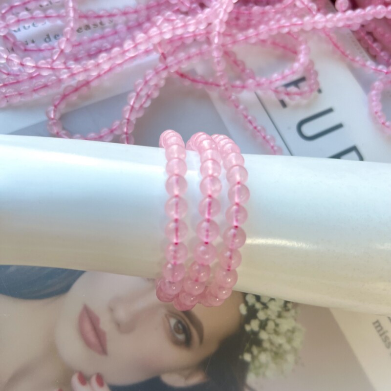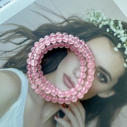 天然马粉水晶手链女手串6mm3圈芙蓉晶宝石新中式饰品桃花运旺夫潮
