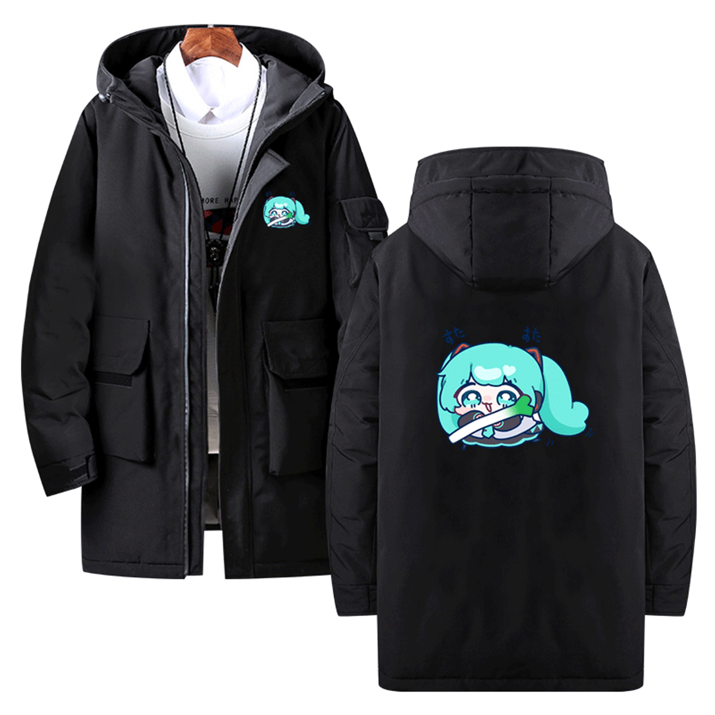 miku卡通初音二次元未来可爱联名炸毛cos可定制外套中长款羽绒服
