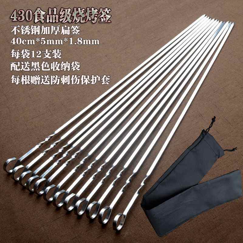 不锈钢扁签加厚 烧烤羊肉串烤肉签子铁签子烤串用具家用签字工具