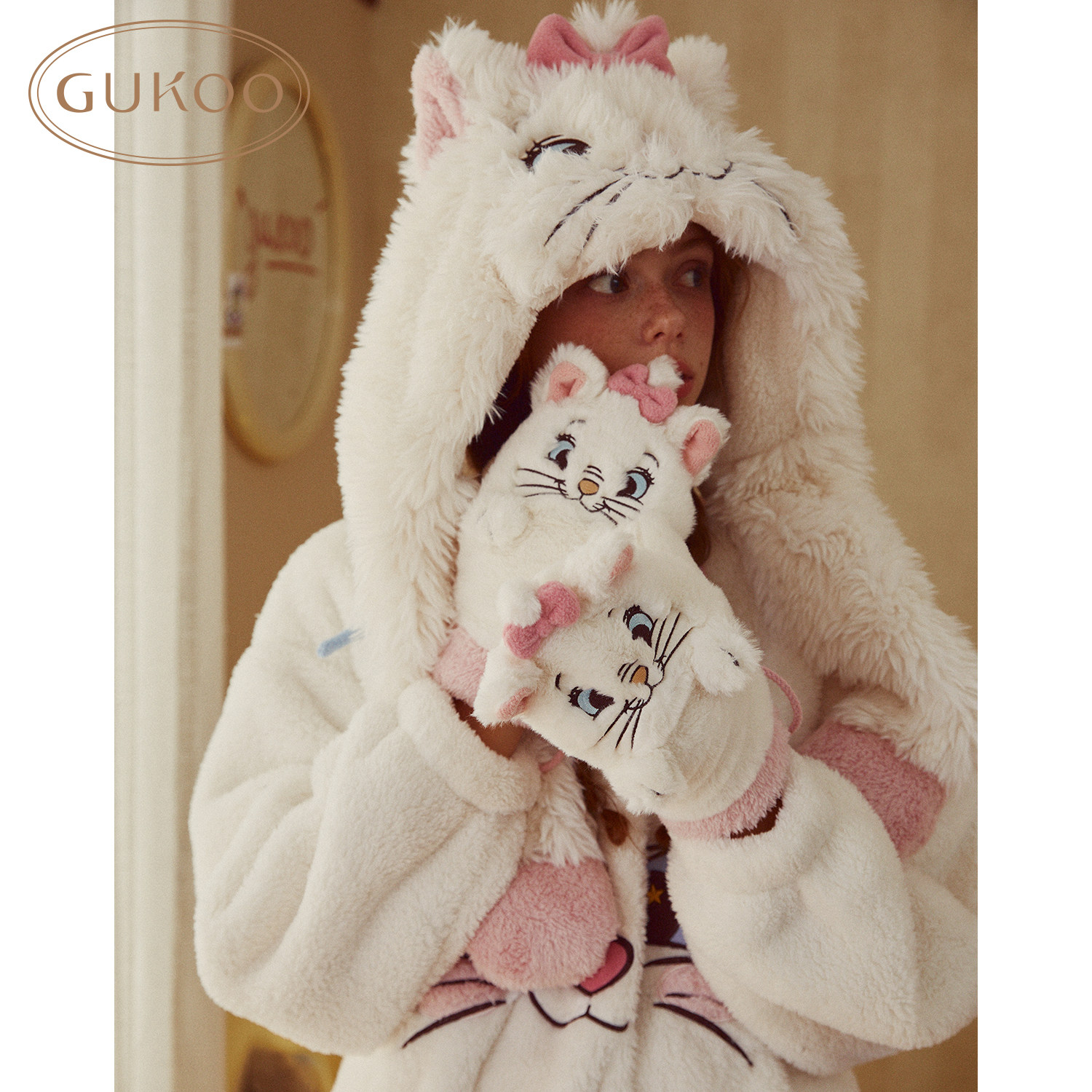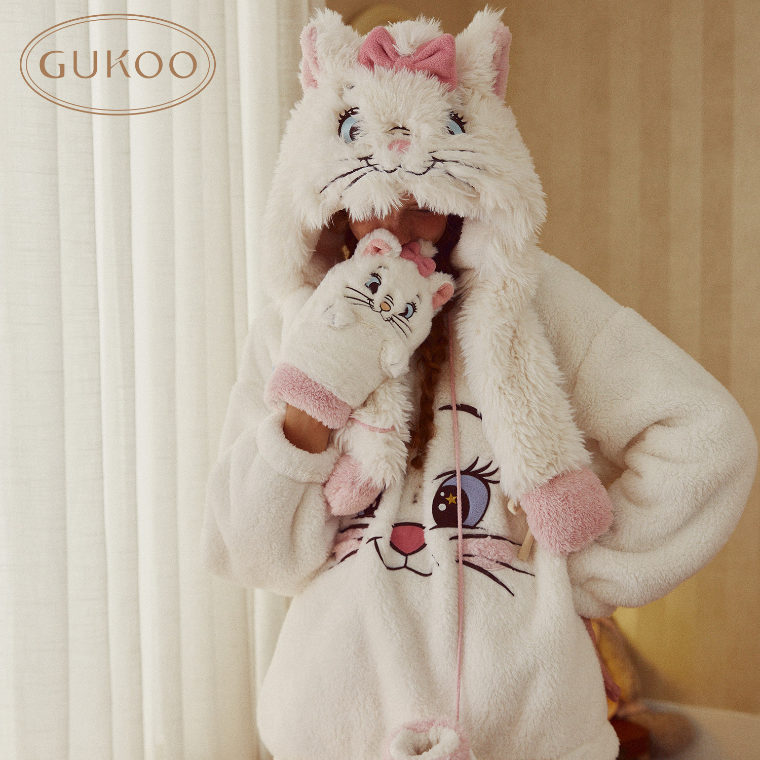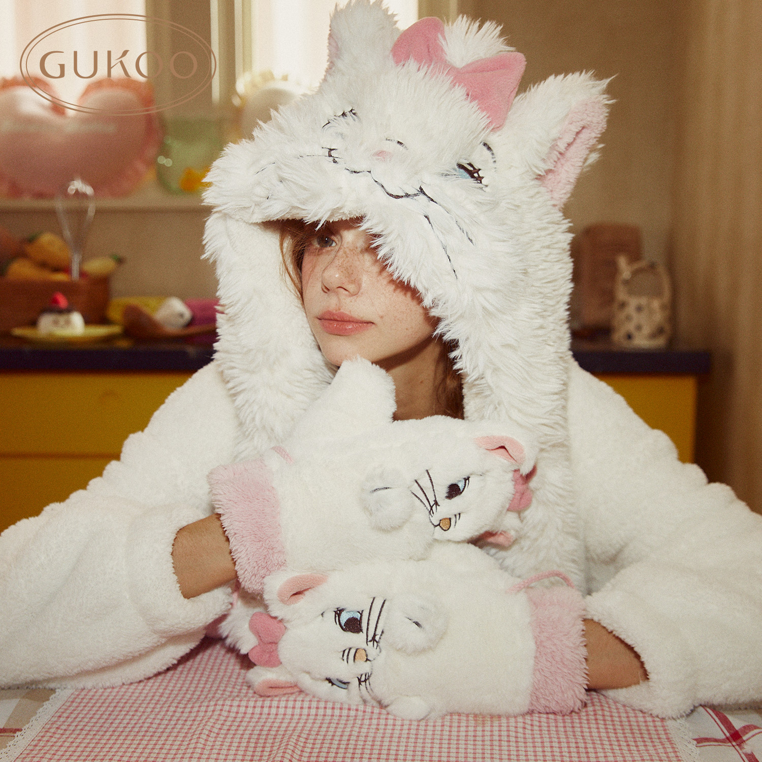Gukoo/果壳帽子冬季2025新款迪士尼联名保暖手套女士玛丽猫毛绒帽