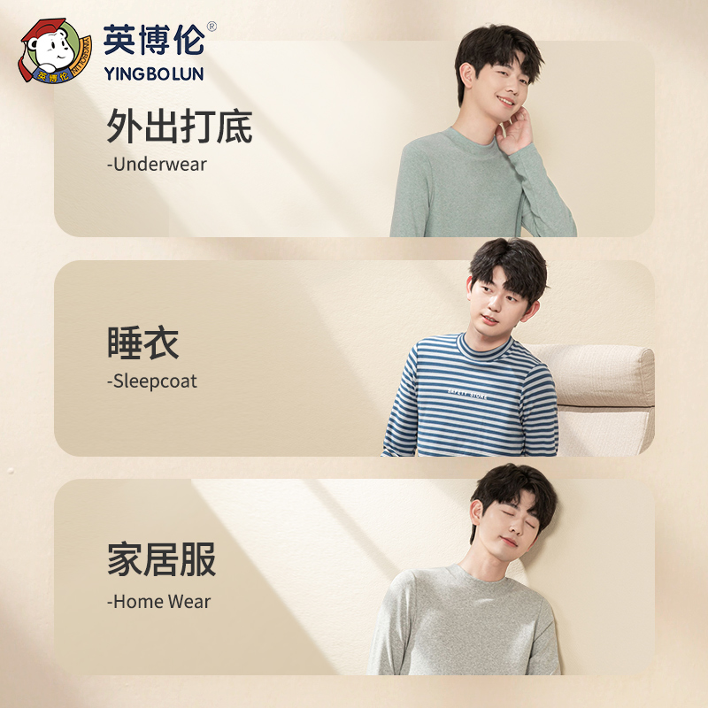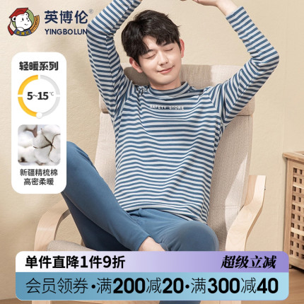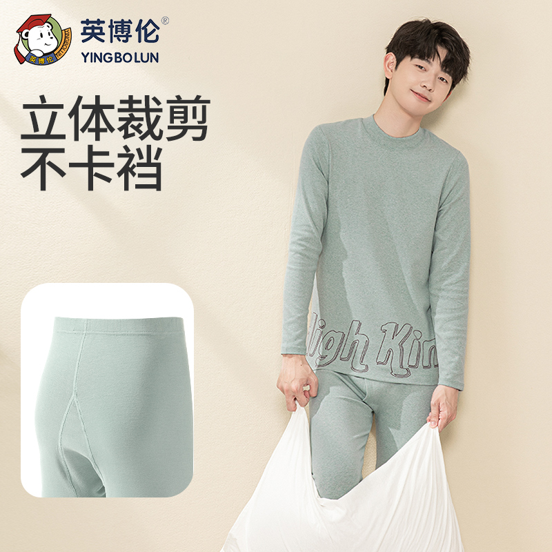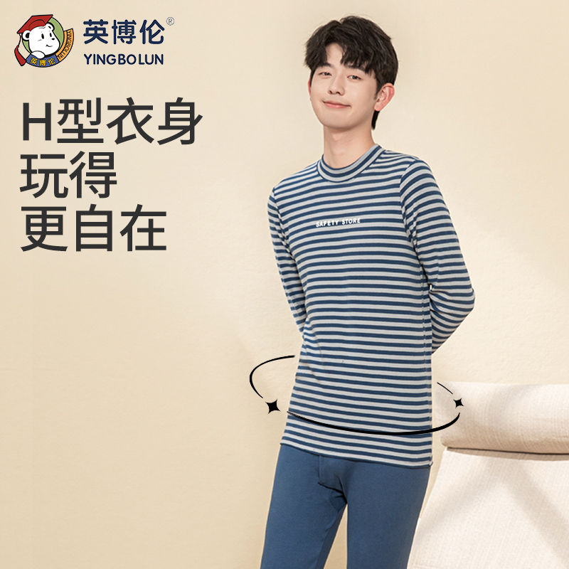 英博伦秋冬季青少年保暖内衣套装儿童纯棉中领秋衣秋裤男大童睡衣