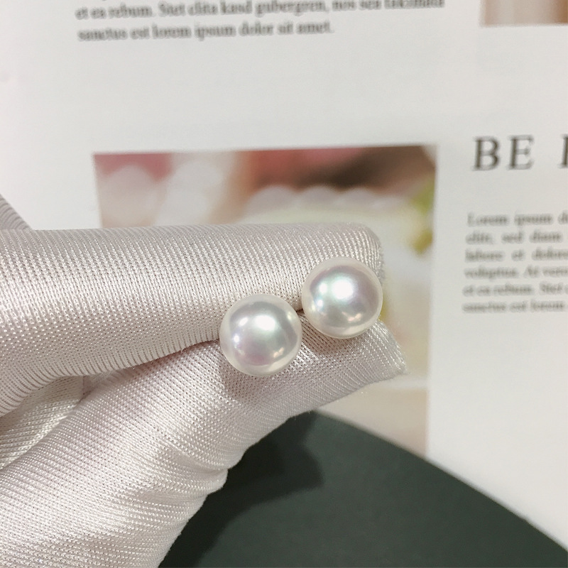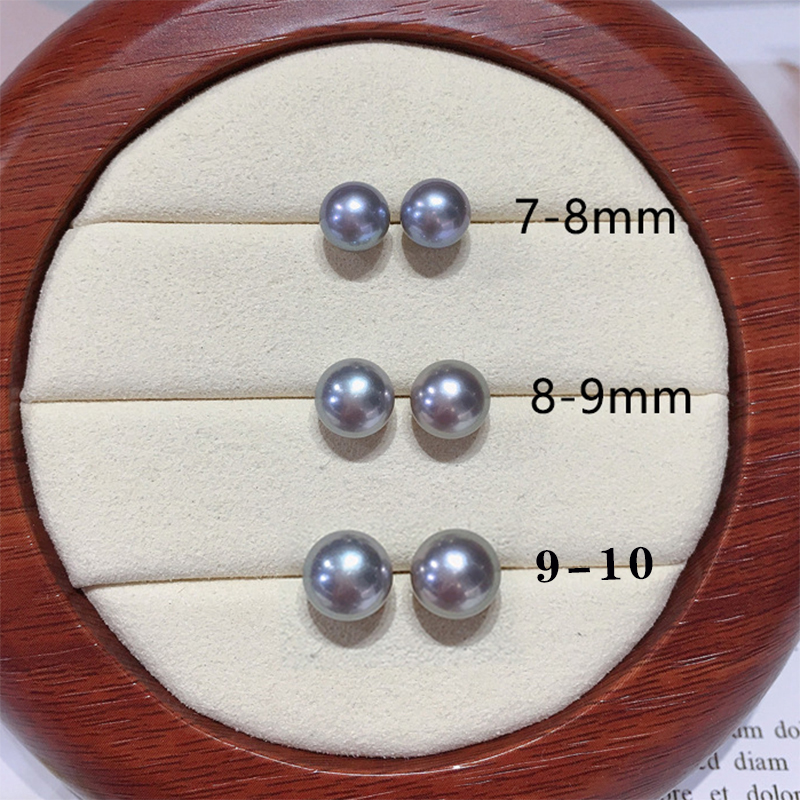 天然淡水灰色珍珠耳钉女馒头扁圆爆款气质浙江诸暨真珍珠纯银耳饰