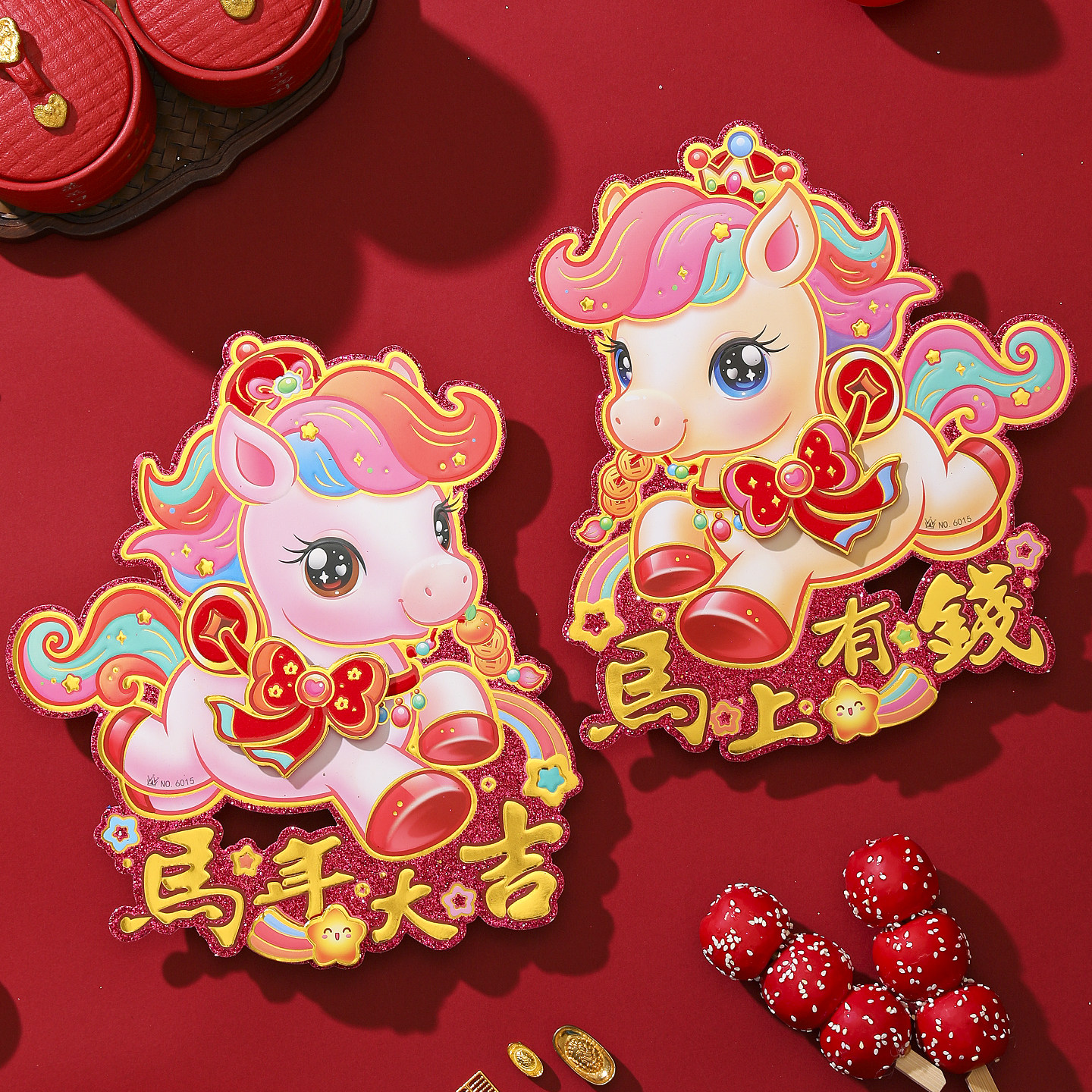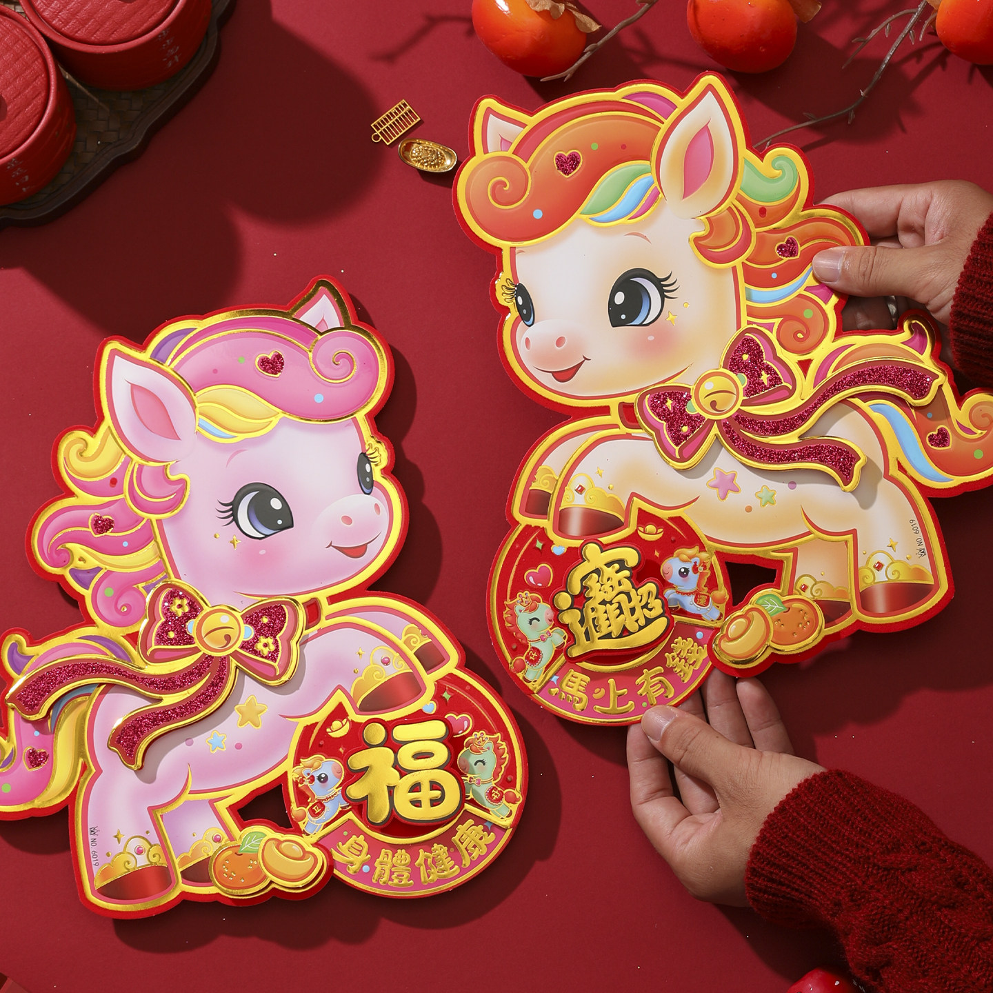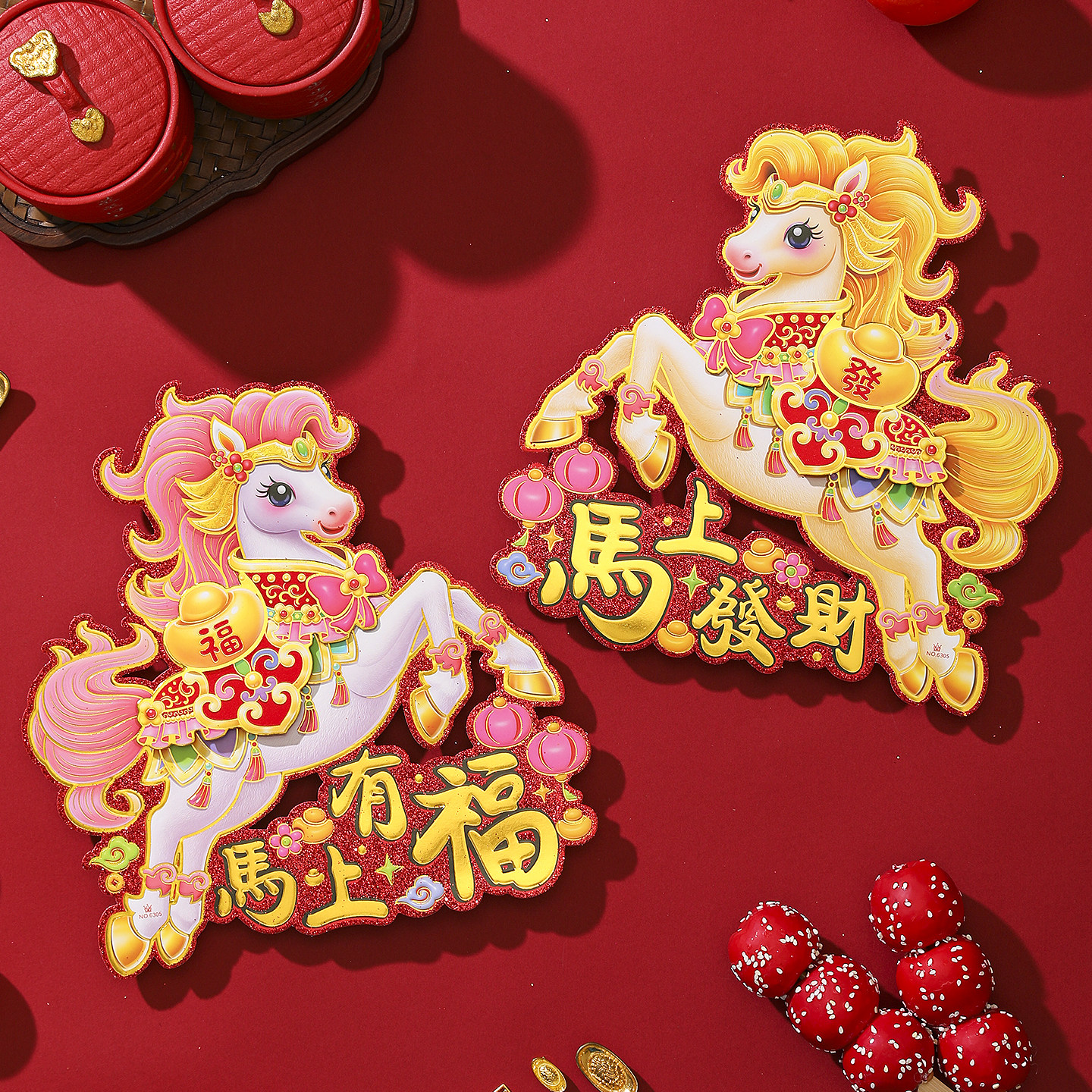 新年对贴2026马年立体卡通生肖福字对拜橱窗门贴春节过年装饰贴纸