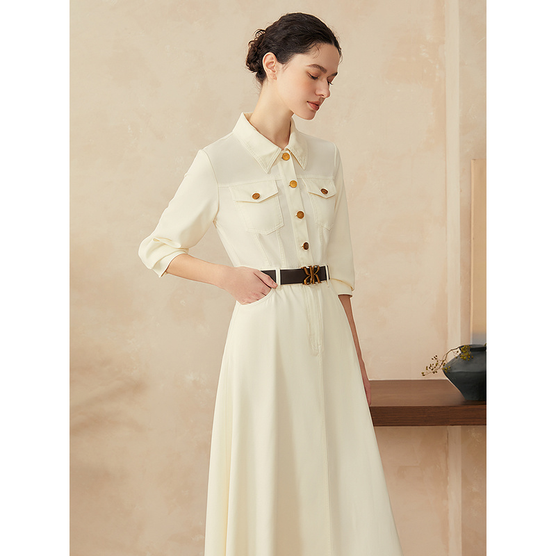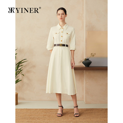 【天丝系列】YINER音儿2025春季新款复古环保肌理翻领牛仔连衣裙