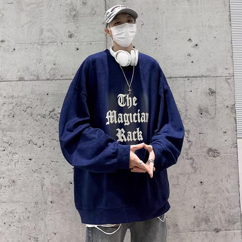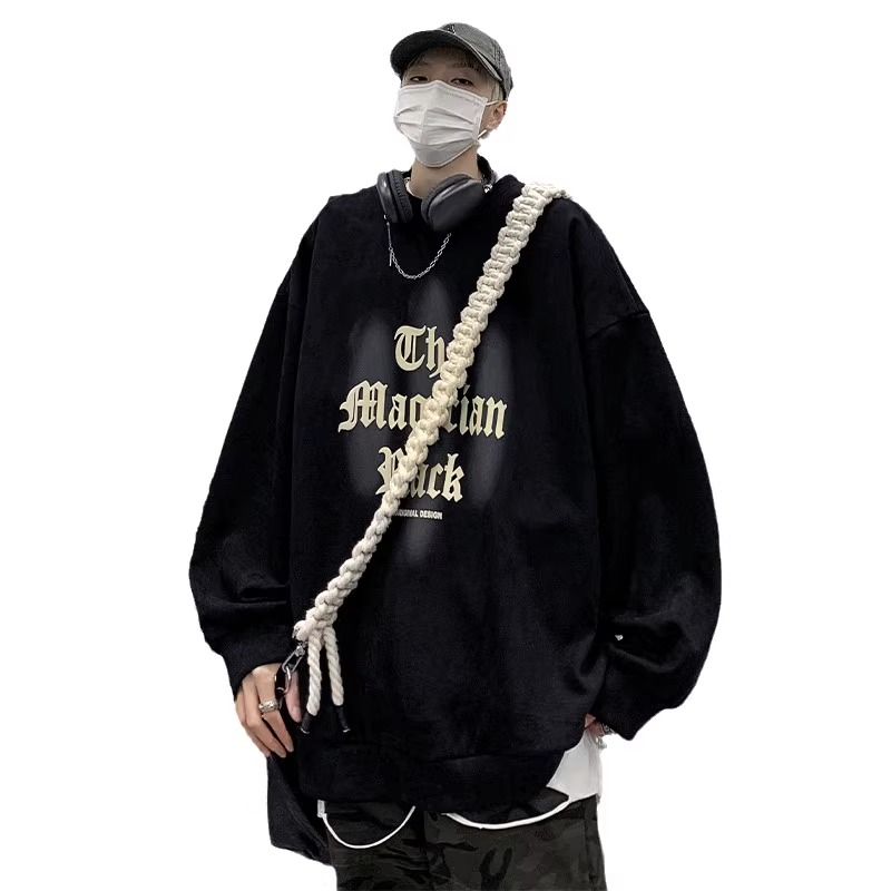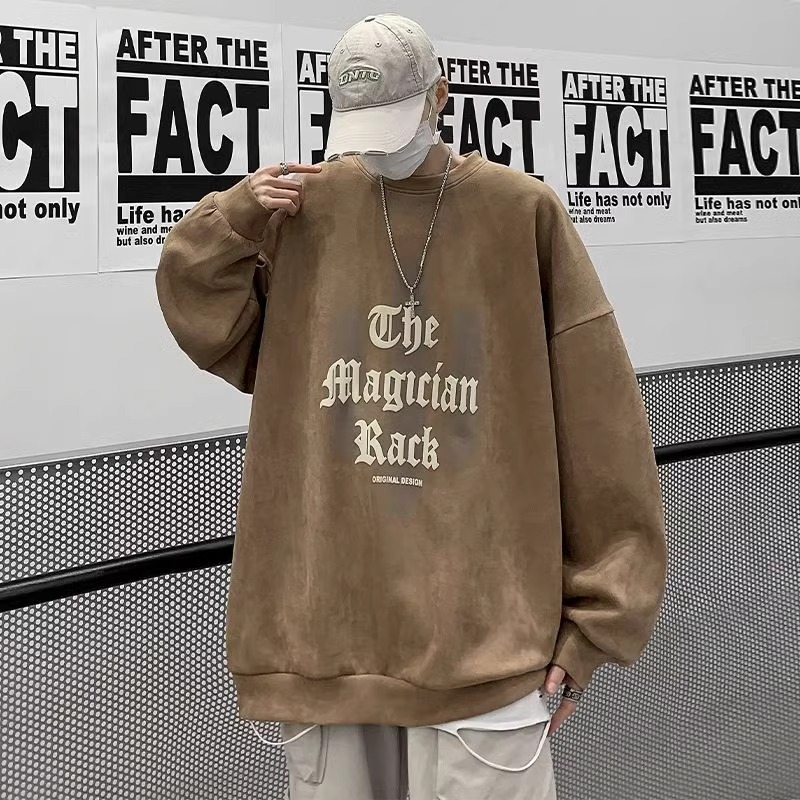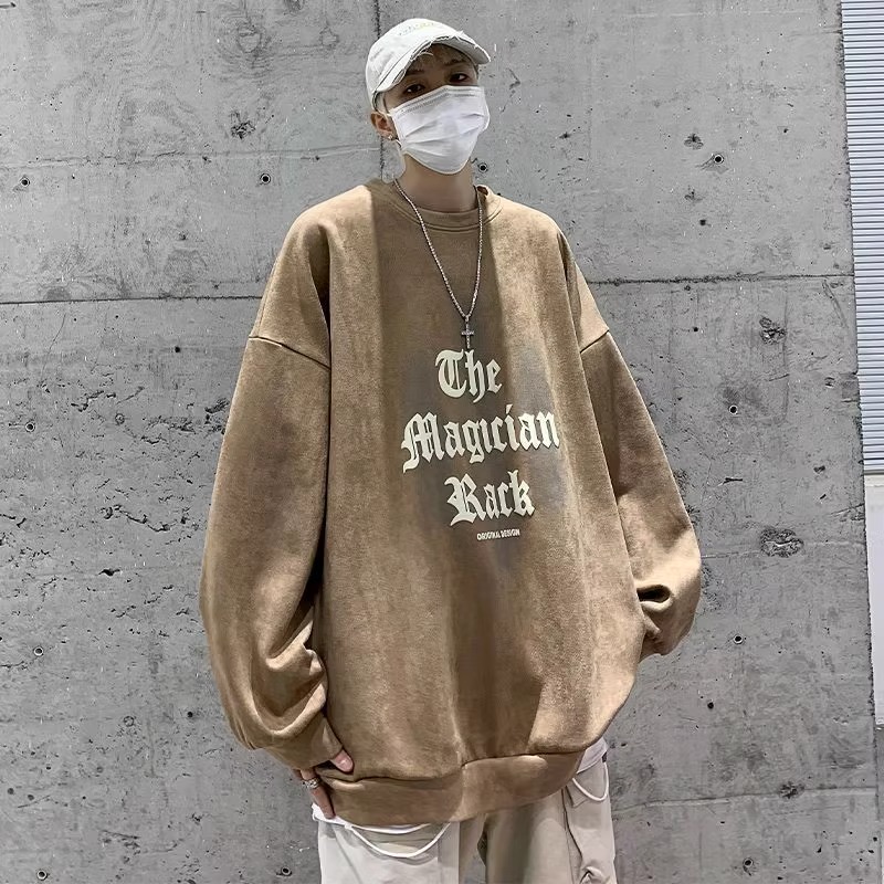 特大码300斤重磅纯棉卫衣男装秋冬复古宽松圆领上衣潮牌长袖外套2