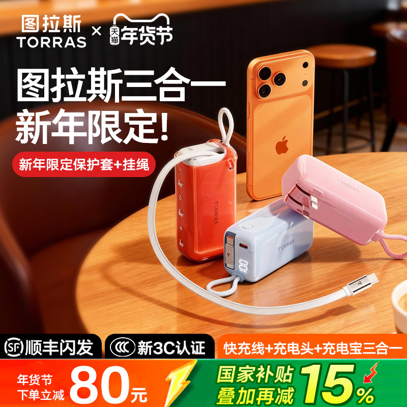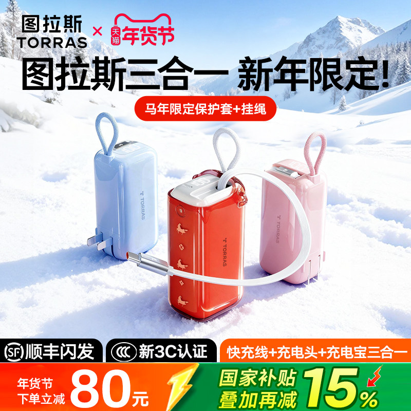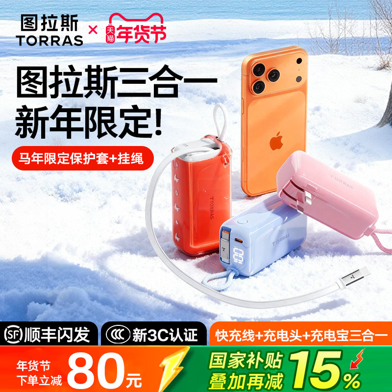 【papi酱推荐】图拉斯三合一随心充3C认证充电宝器可上飞机2025新款大容量插头便携适用苹果17官方移动电源