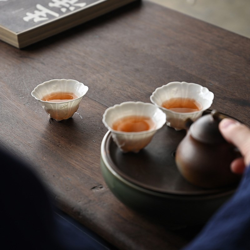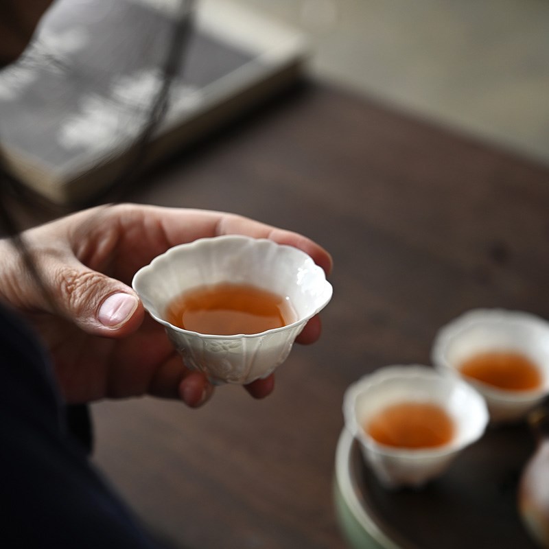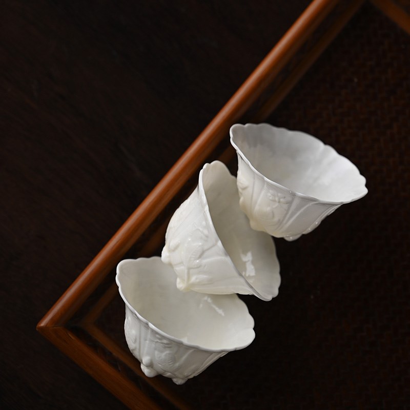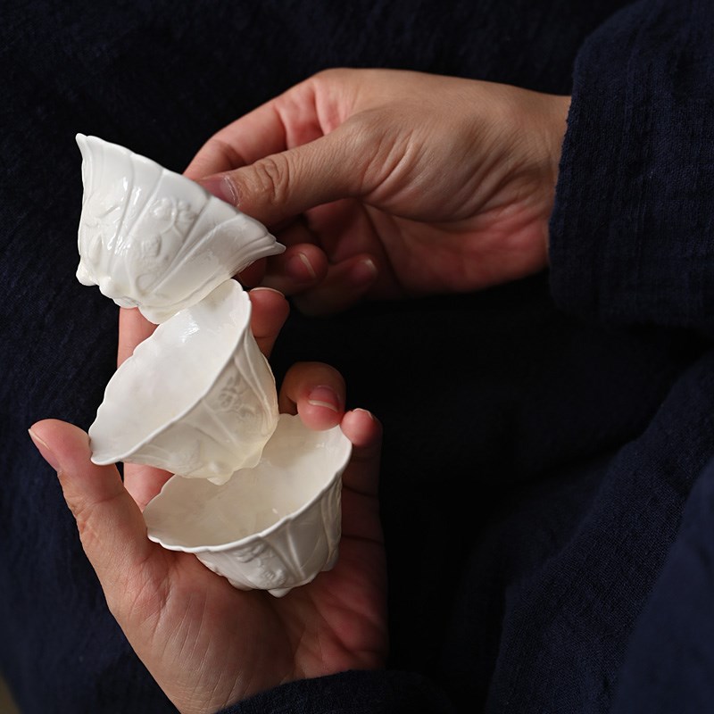 厚皿印坯工艺白瓷功夫茶具茶杯主D人杯手工花型杯仿古薄胎品茗杯