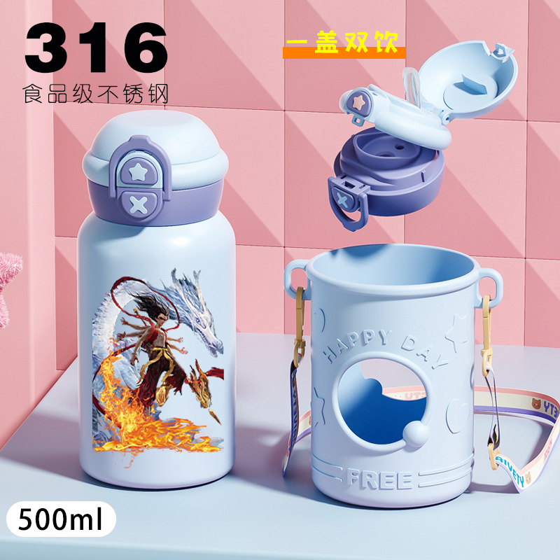 哪吒儿童保温杯大号大容量学生上学专用新款男款宝宝吸管双饮水杯