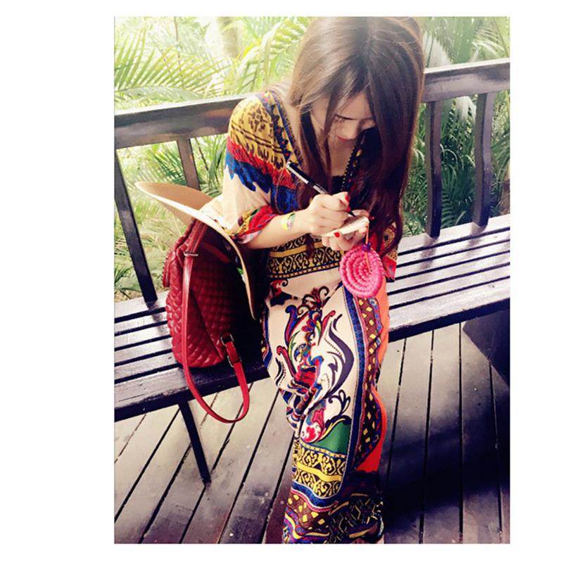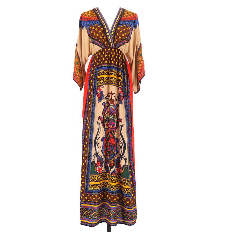 波西米亚印花沙滩长裙海边度假显瘦泰国三亚民族风大码胖mm连衣裙