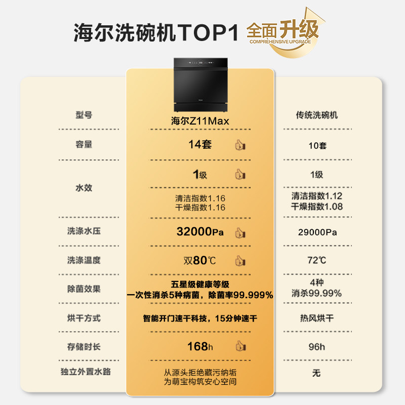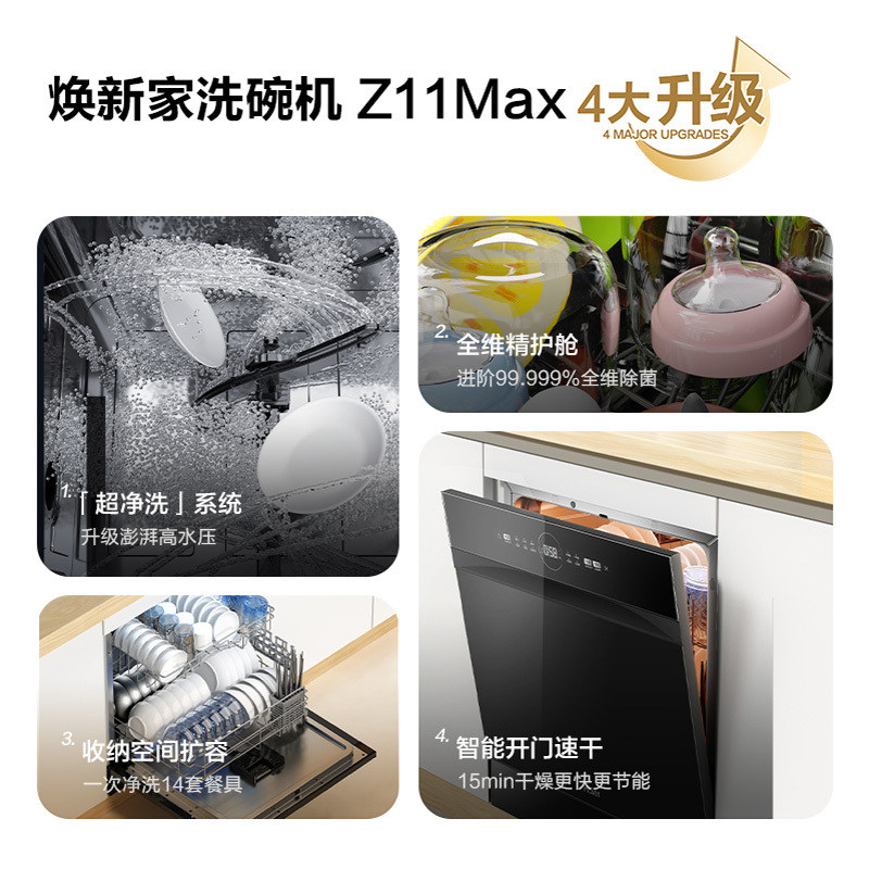海尔Z11Max灶下洗碗机嵌入式全自动家用小型消毒柜烘干一体机14套