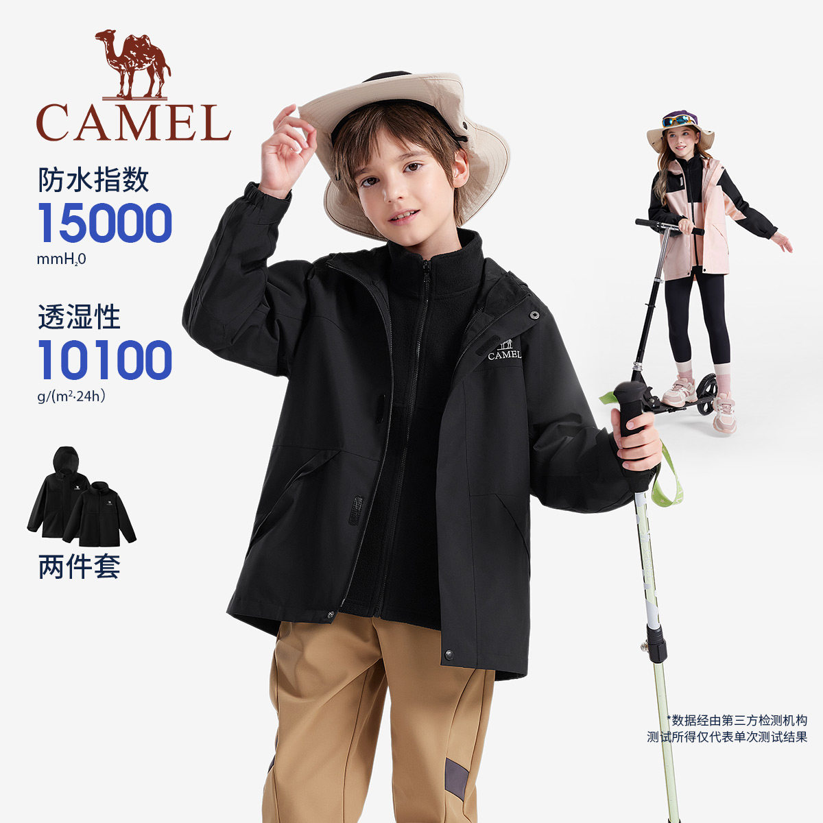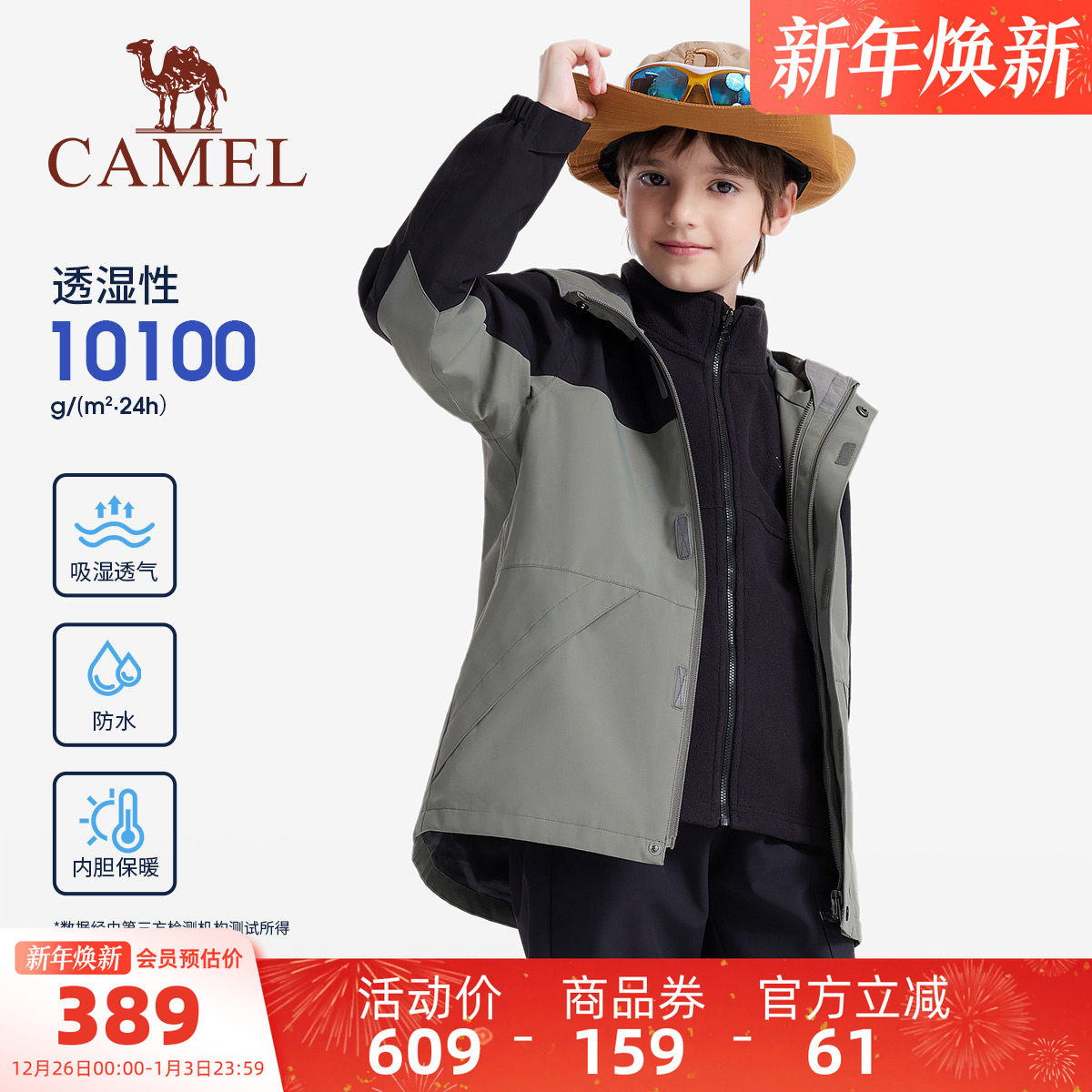 小骆驼儿童冲锋衣三合一防风防水户外加绒滑雪服男女童登山服外套