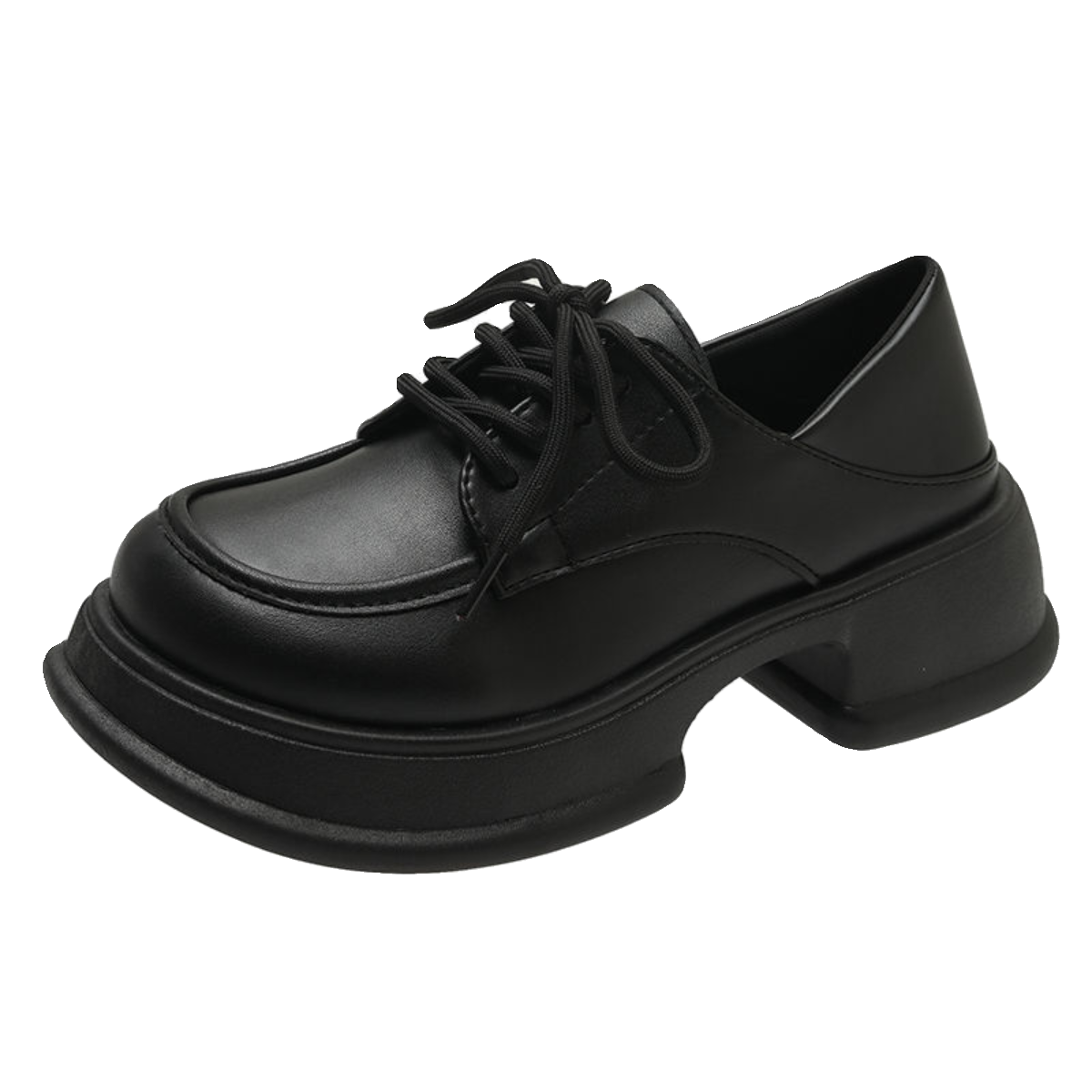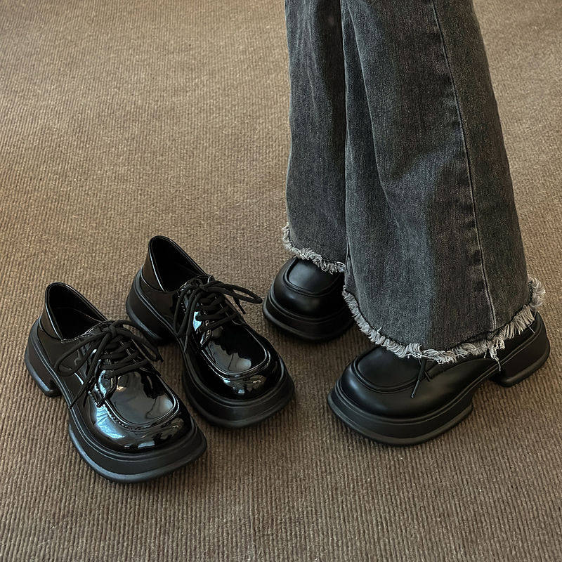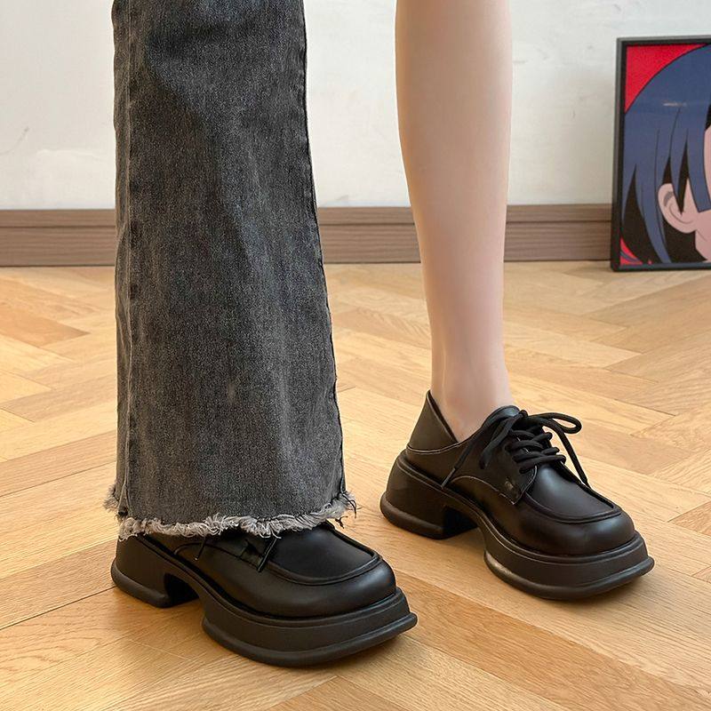 小皮鞋女2025年秋季新款圆头松糕厚底日系黑色百搭英伦风增高单鞋