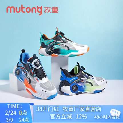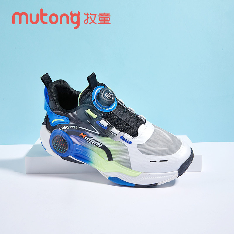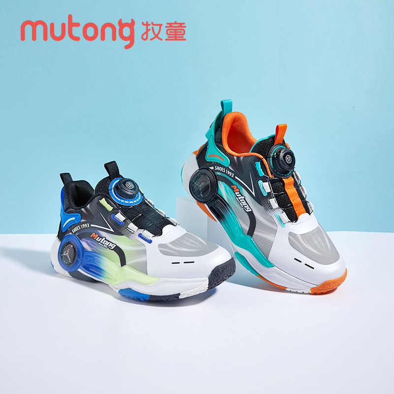 牧童童鞋男童2025春秋篮球鞋女童运动鞋透气网面大童旋转纽扣鞋子