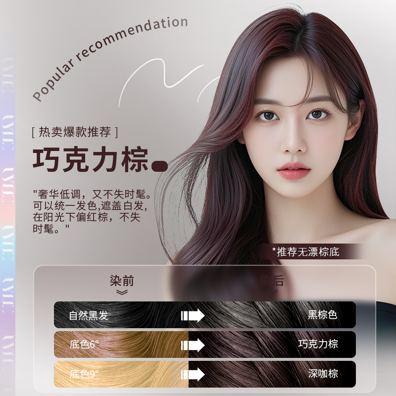 巧克力棕予色予悦Uyeegal染发剂染膏深棕暖棕红棕盖白发统一发色