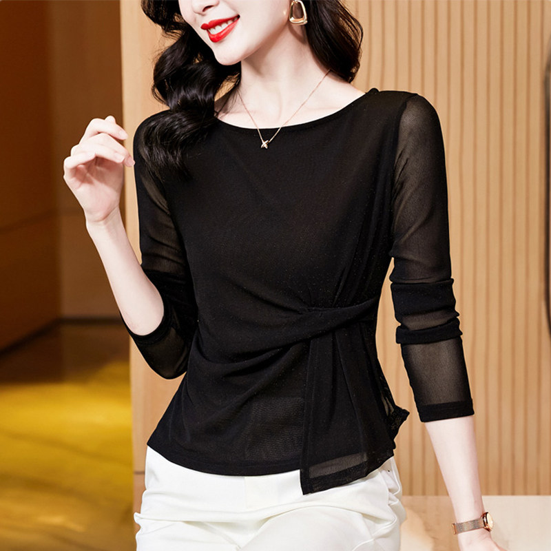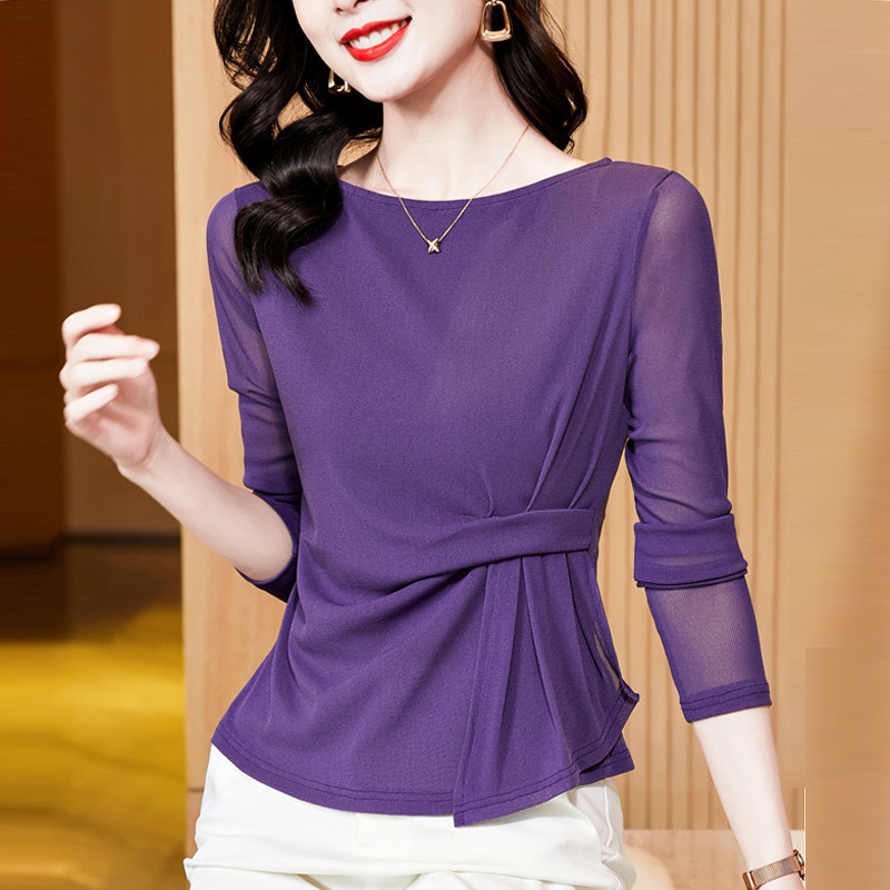 一字领气质网纱打底衫长袖t恤女2025秋季新款别致漂亮蕾丝衫上衣