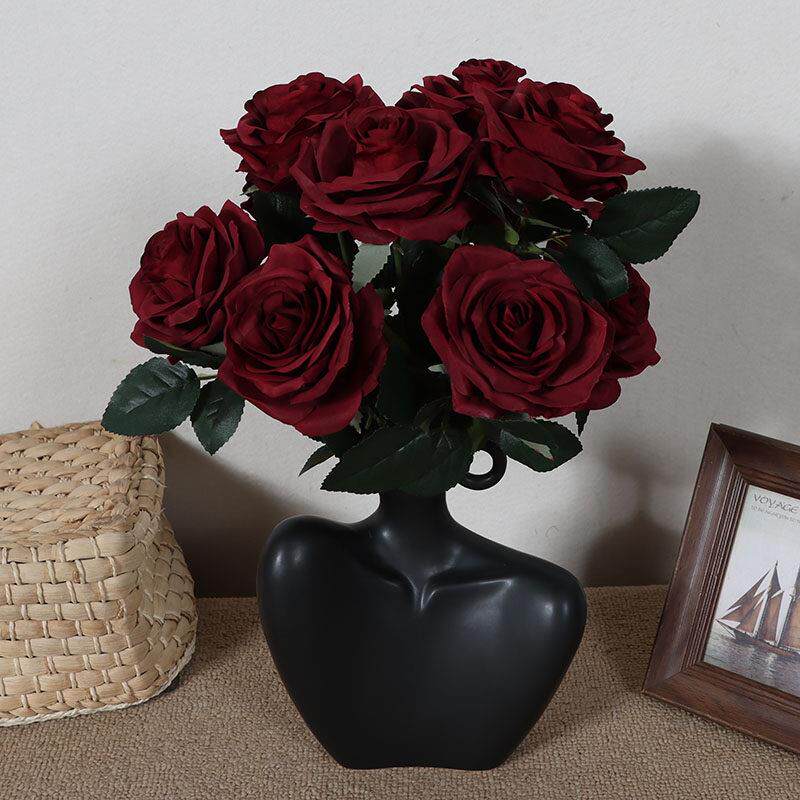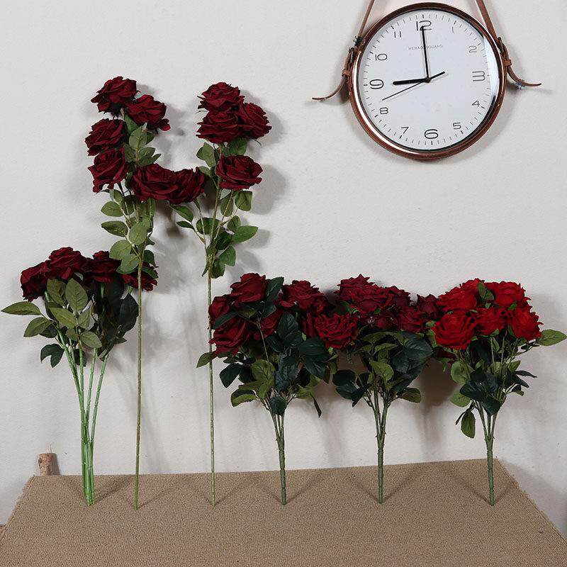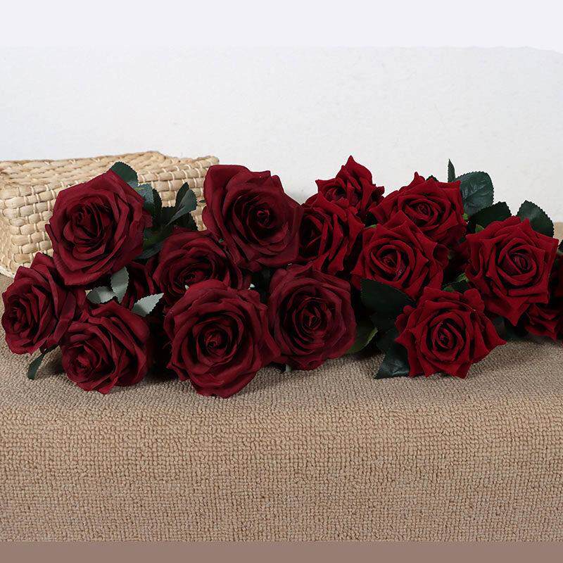 深红玫瑰花束人造花10黑巴克照片工作室照片背景购物中心软装饰人