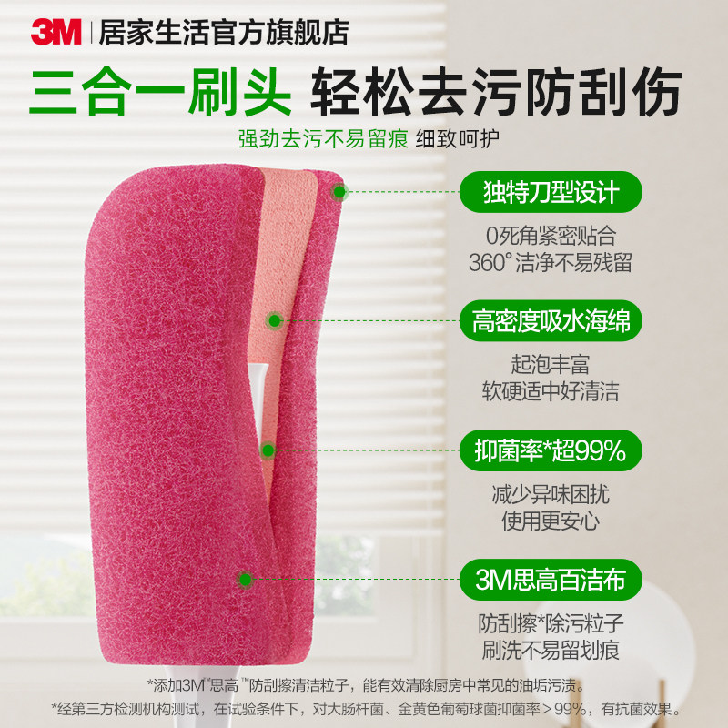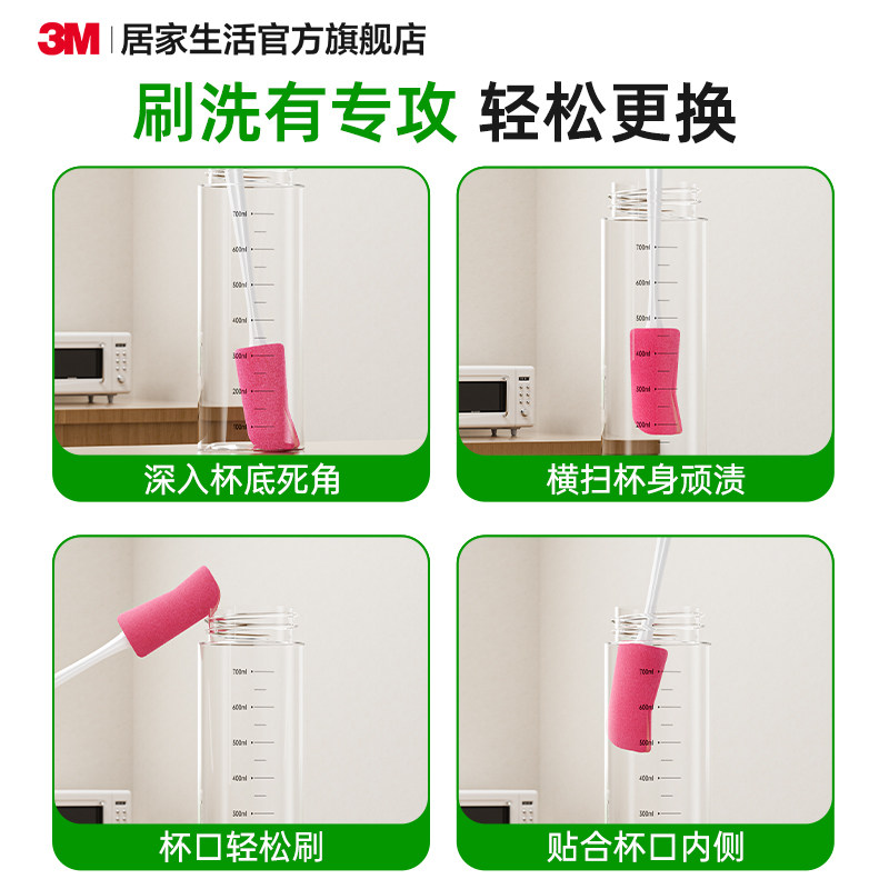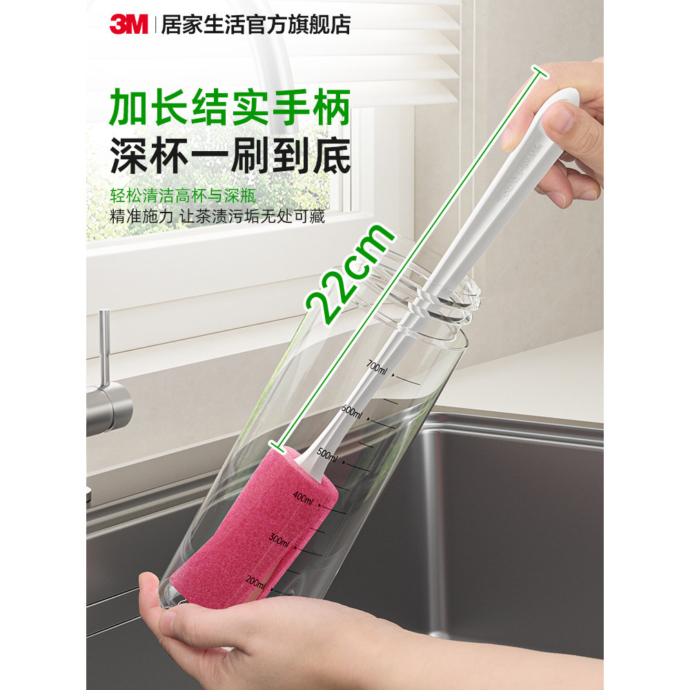 3M思高杯刷奶瓶刷长柄海绵刷水杯保温杯清洁神器洗杯子防刮擦抗菌