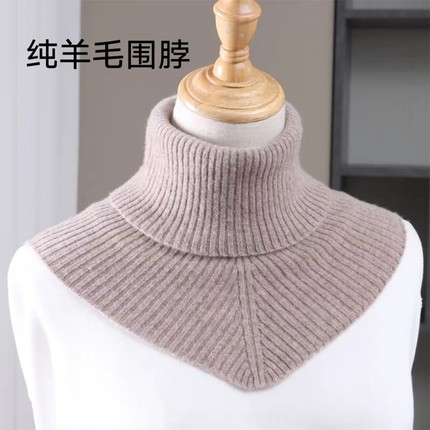 秋冬100%纯羊毛高领脖套女护颈针织假领子围脖毛衣披肩围巾假衣领