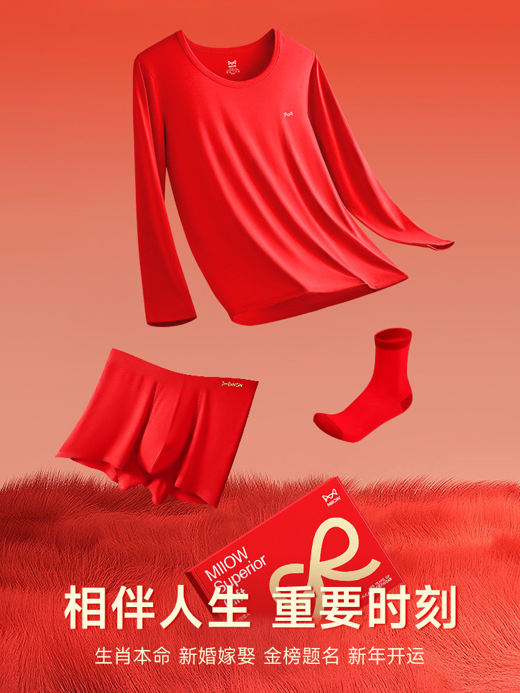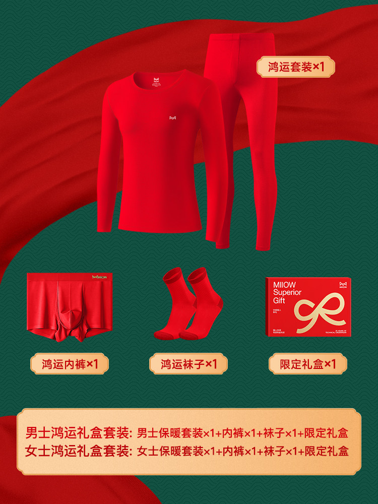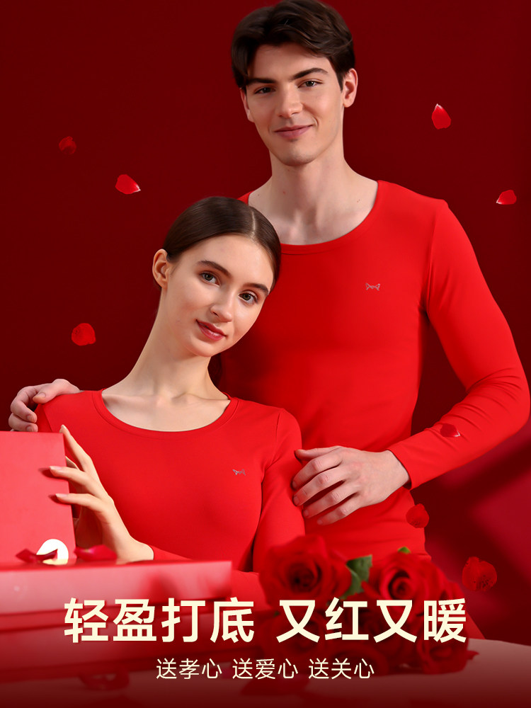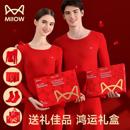 猫人本命年保暖内衣女大红色纯棉男秋衣秋裤袜子内裤套装结婚蛇年
