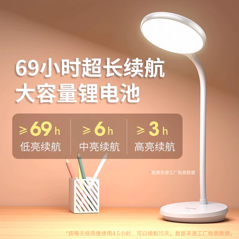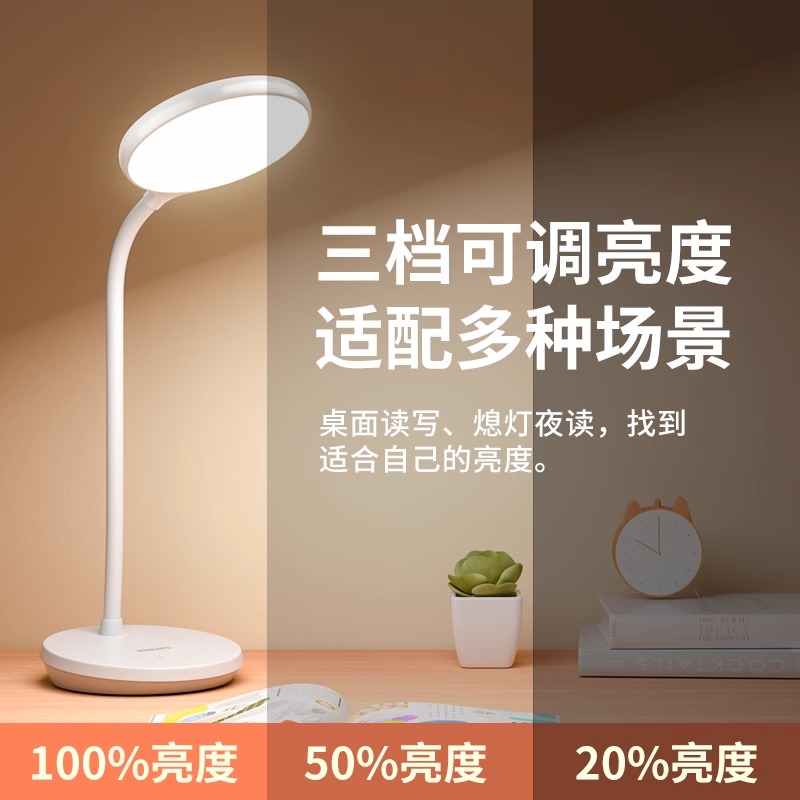 飞利浦led台灯护眼学习专用大学生宿舍床头阅读灯充电两用小台灯