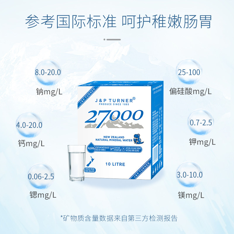 新西兰进口27000母婴儿水高端天然矿泉水孕妇饮用水10L整箱装