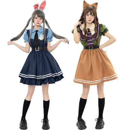 迪士尼cos疯狂动物城朱迪兔尼克狐狸动漫万圣节成人兔子警官服装