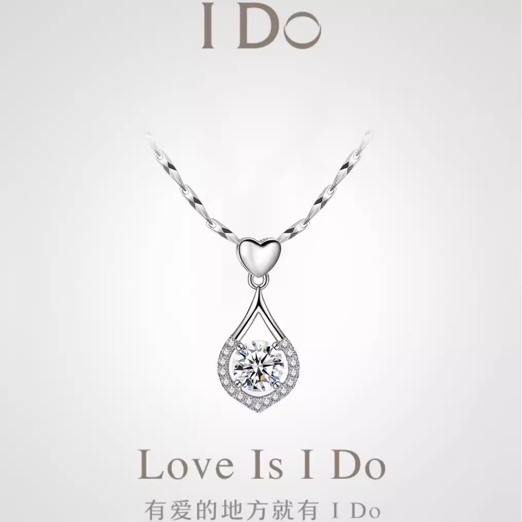 I DO 幻影蝴蝶项链Pt950铂金套链钻石吊坠白金锁骨链情人节送女友