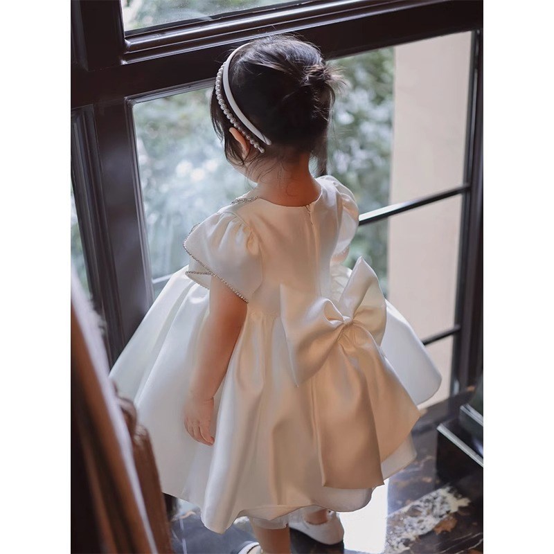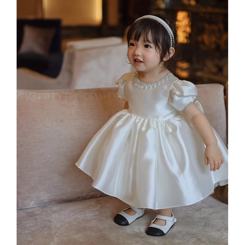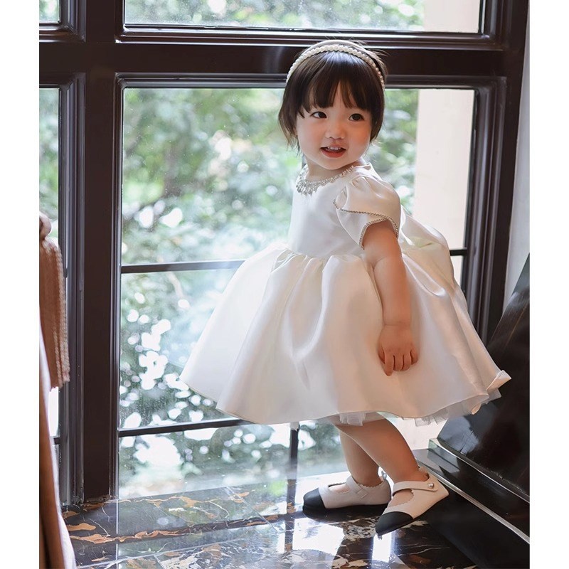 一周岁礼服女童生日公主裙百搭洋气花童婚礼小女孩宴会白色蓬蓬裙