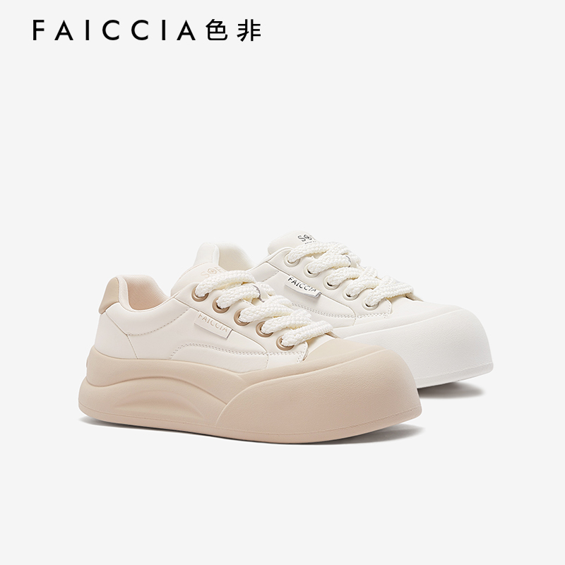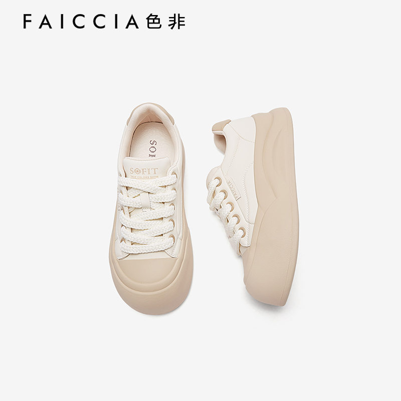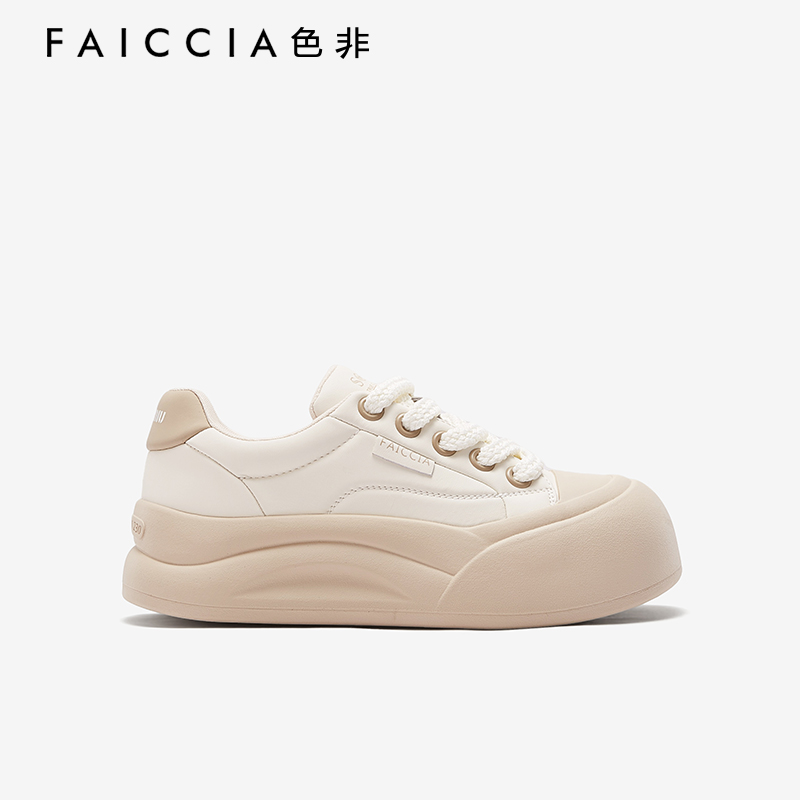色非厚底增高小白鞋2025春夏新款时尚丑萌大头鞋系带饼干鞋面包鞋