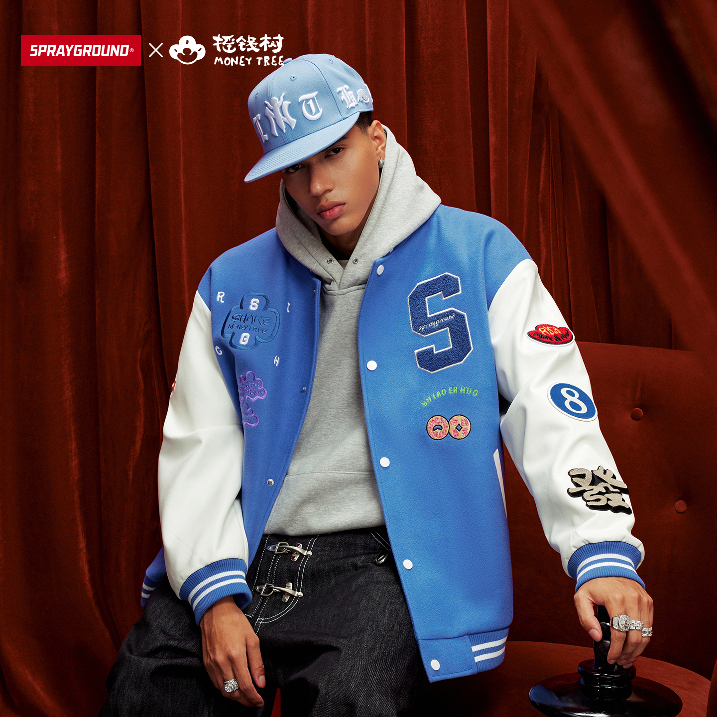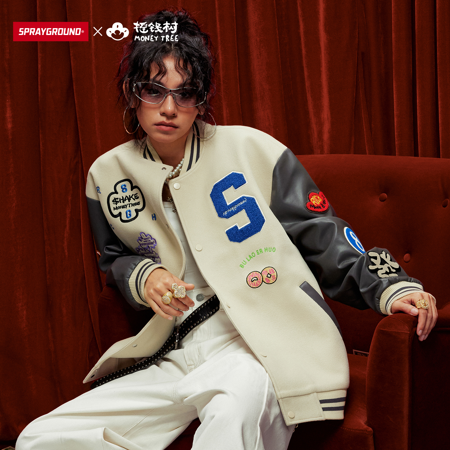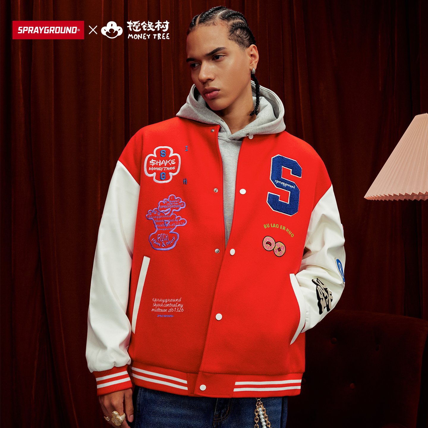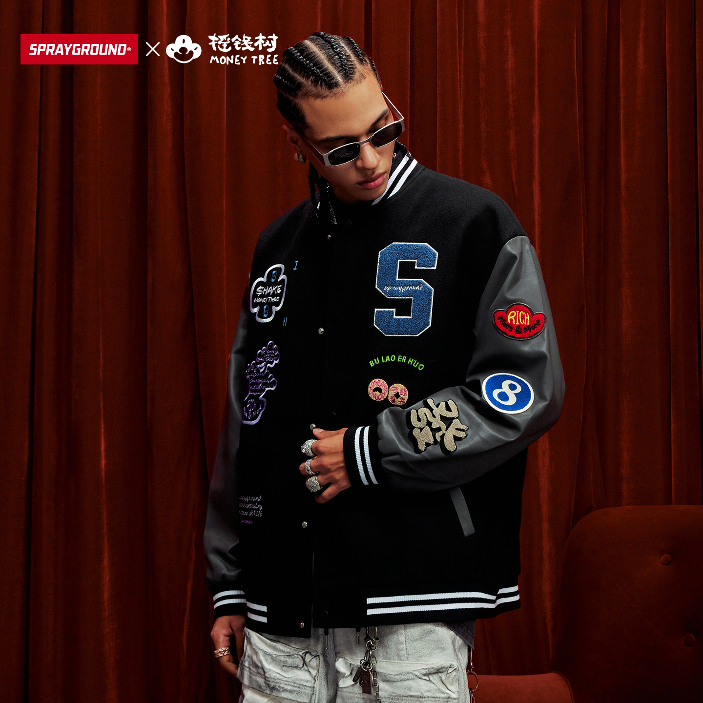 【摇钱树联名】SprayGround鲨鱼嘴毛巾绣棒球服夹克男宽松外套潮