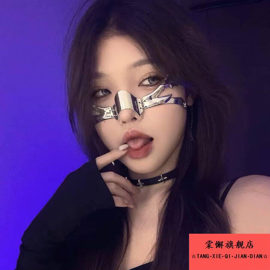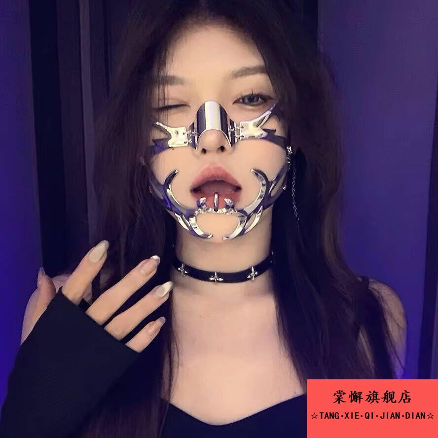 赛博朋克面罩下巴金属半脸面具女脸链饰男嘴套止咬器人cos万圣节