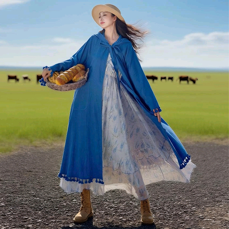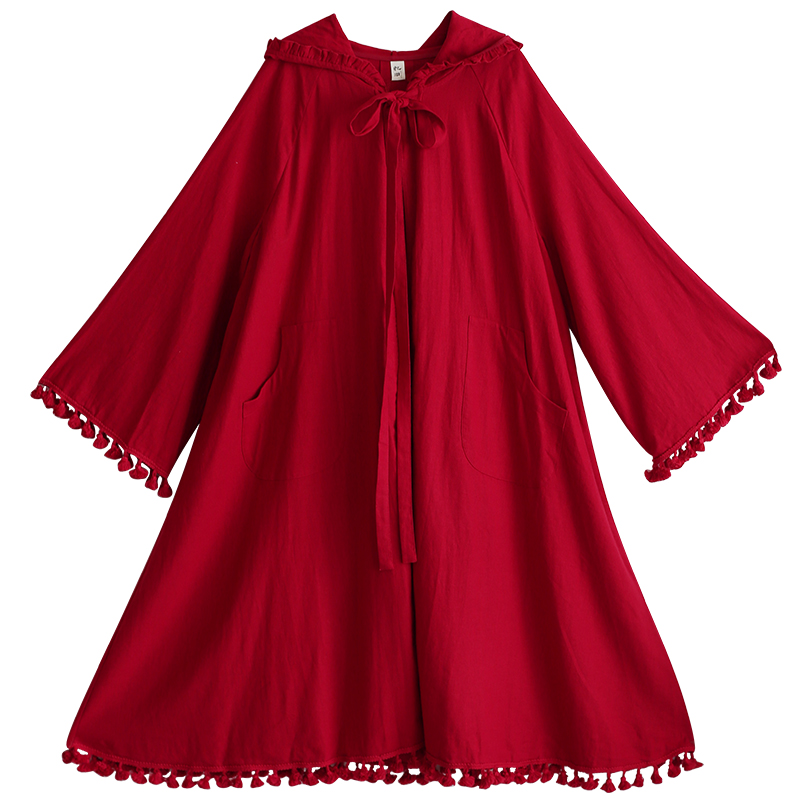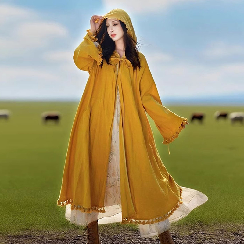 【自由诗】忆旧秋季原创设计 水洗亚麻披风 文艺连帽中长款风衣女