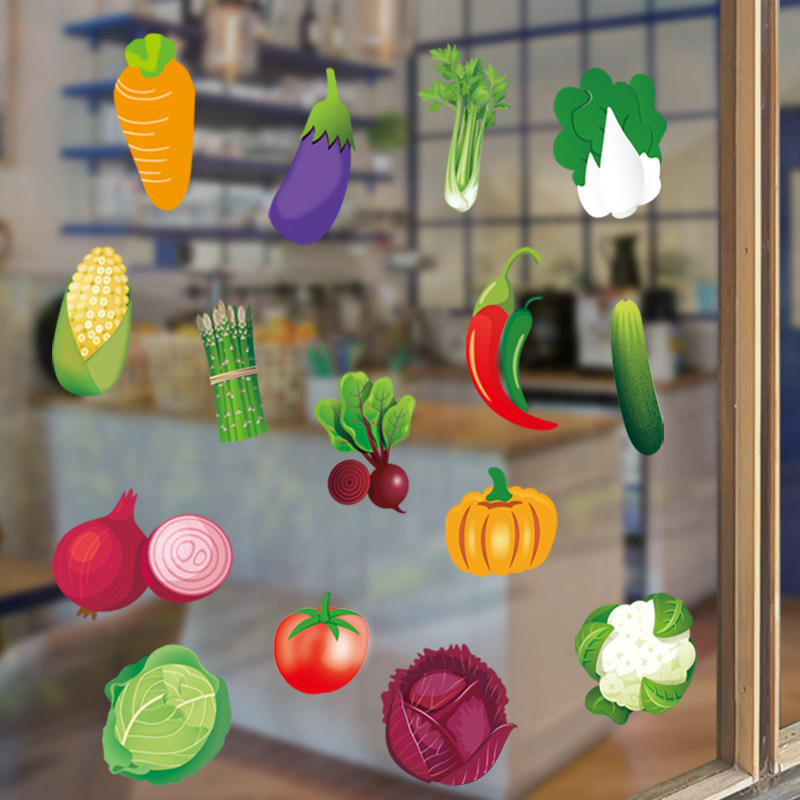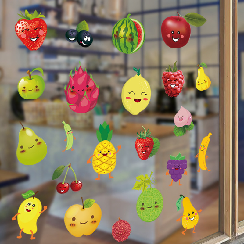 彩色水果蔬菜无胶静电玻璃贴画装饰橱窗玻璃冰箱橱柜食物小贴纸画