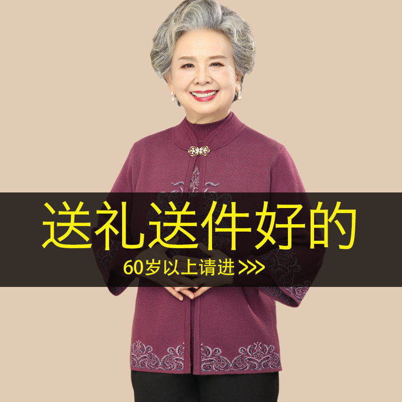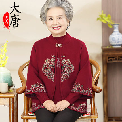 奶奶春装毛衣外套女中老年人红色妈妈婚宴装礼服老人太太生日衣服
