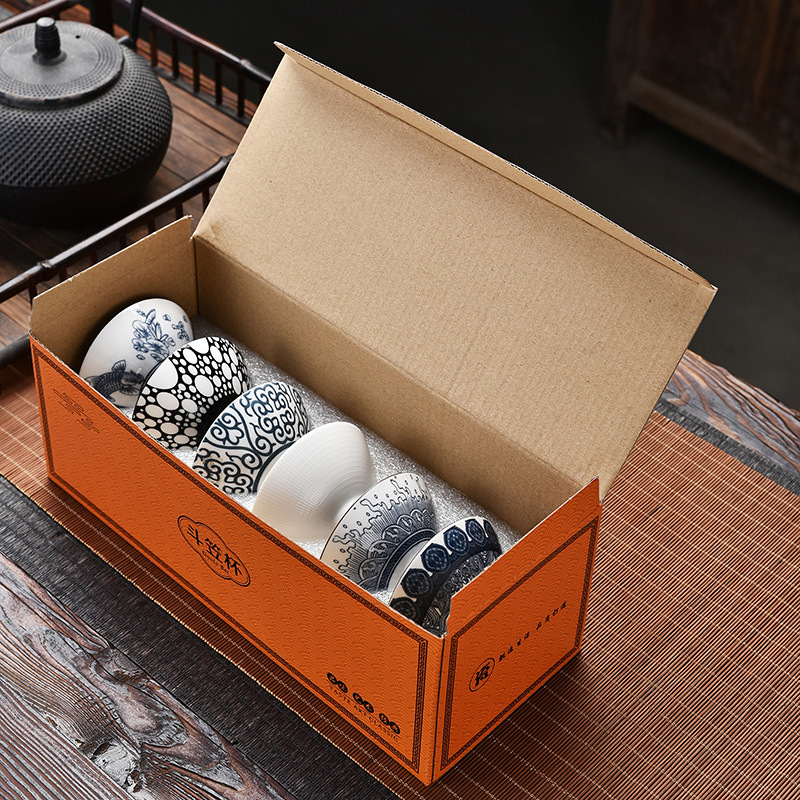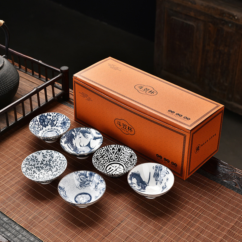 青花瓷茶杯茶碗品茗斗笠杯陶瓷功夫小茶杯单杯主人杯茶具茶盏套装