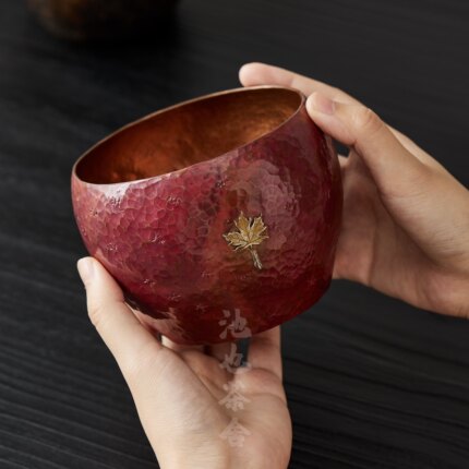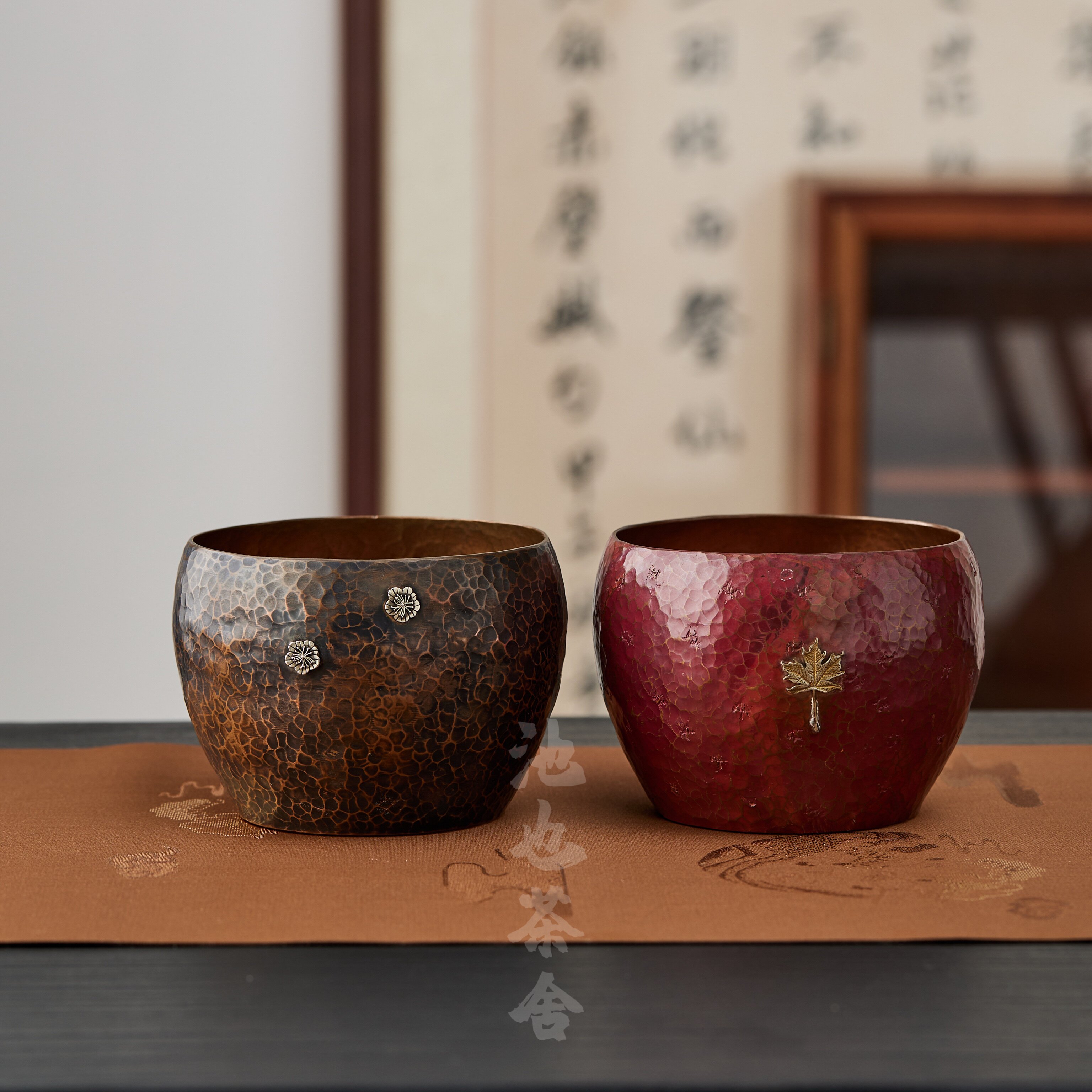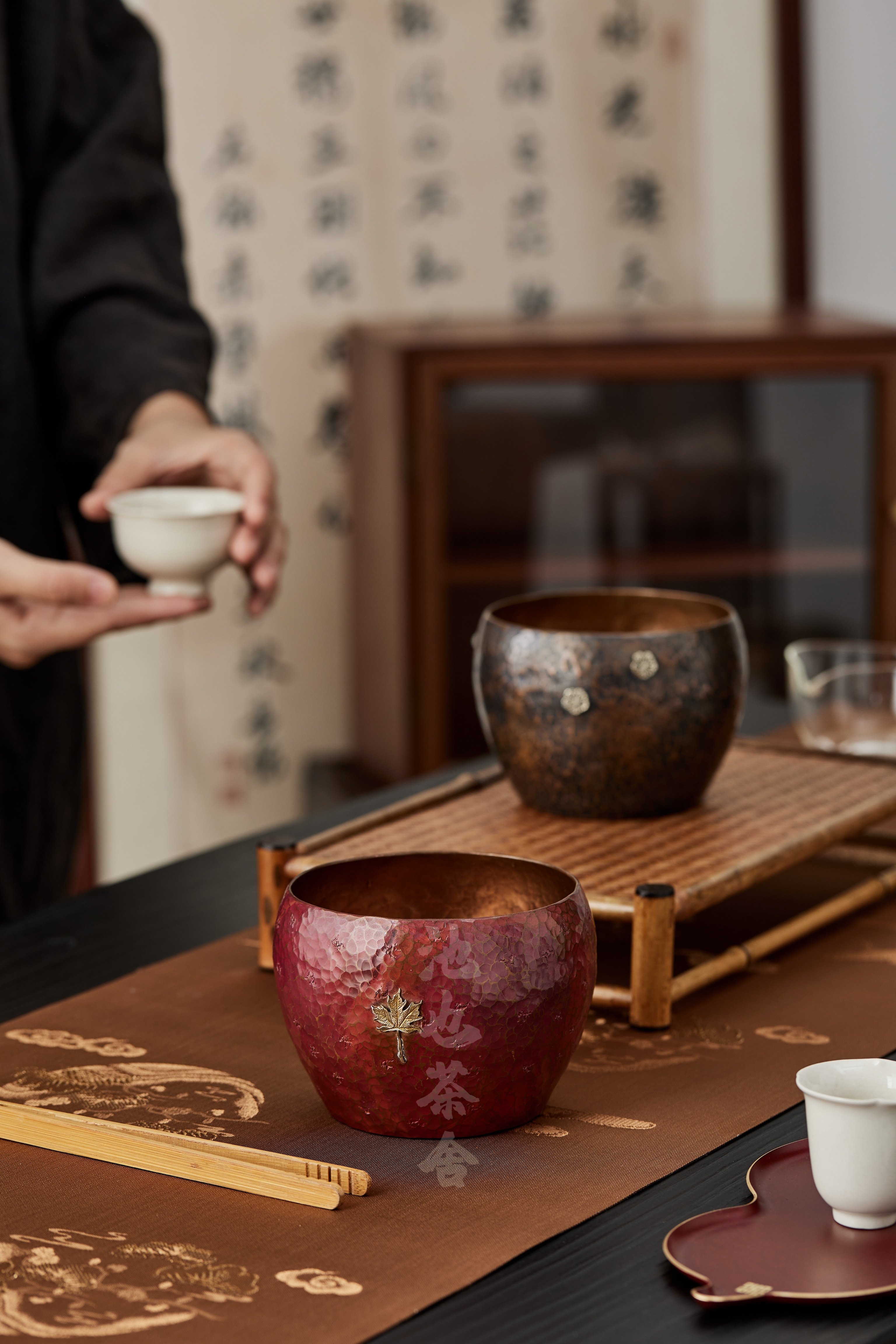 池也纯铜茶洗大号家用水盂水洗手工紫铜枫叶建水茶碗茶渣缸大容量