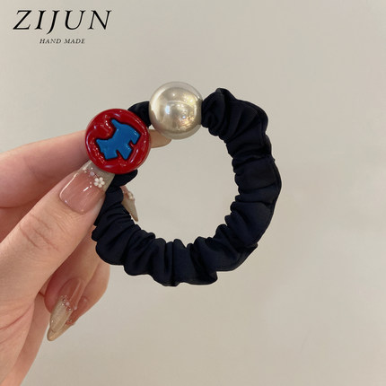 可爱撞色小狗珍珠小肠发圈头绳女高级感简约耐用黑色皮筋马尾发绳