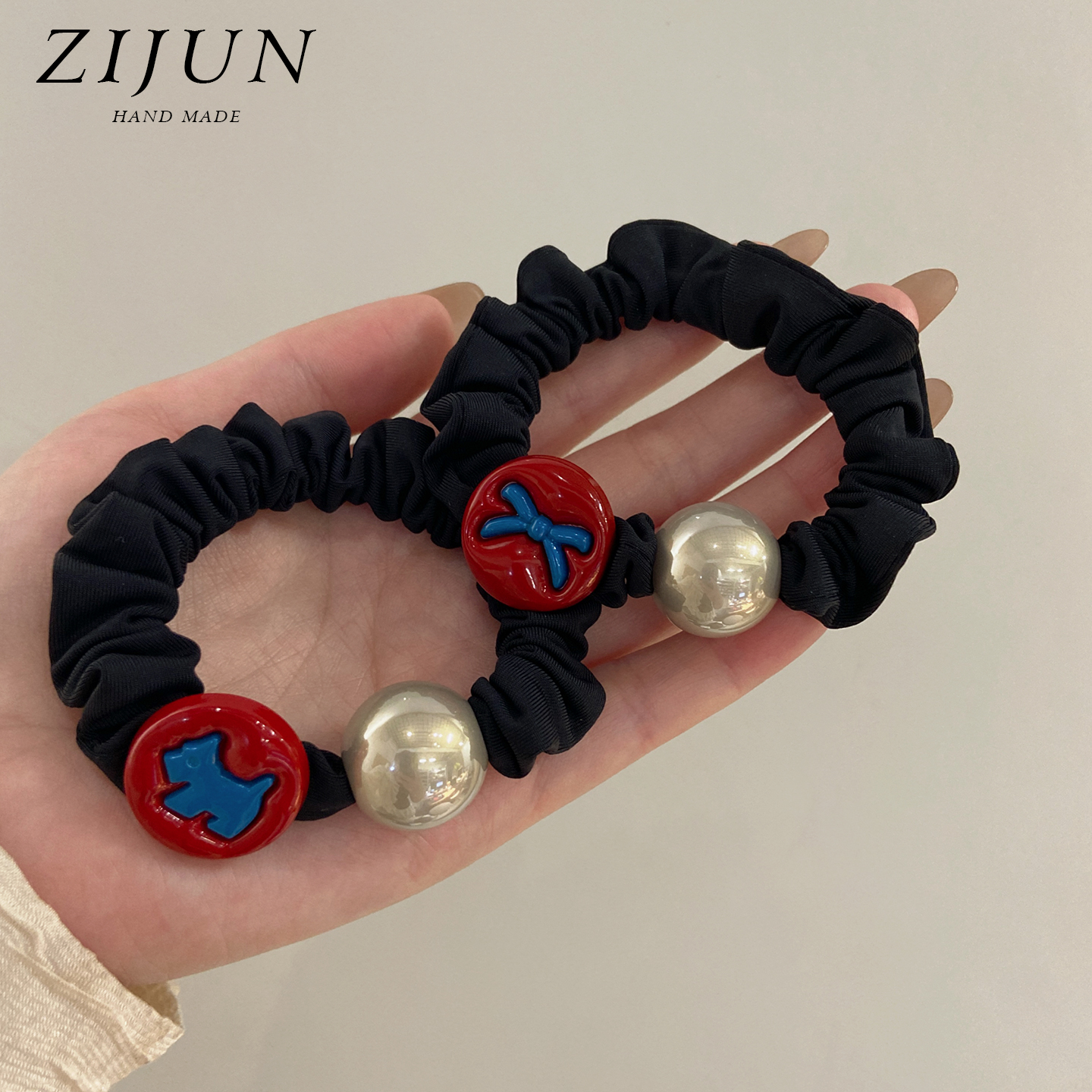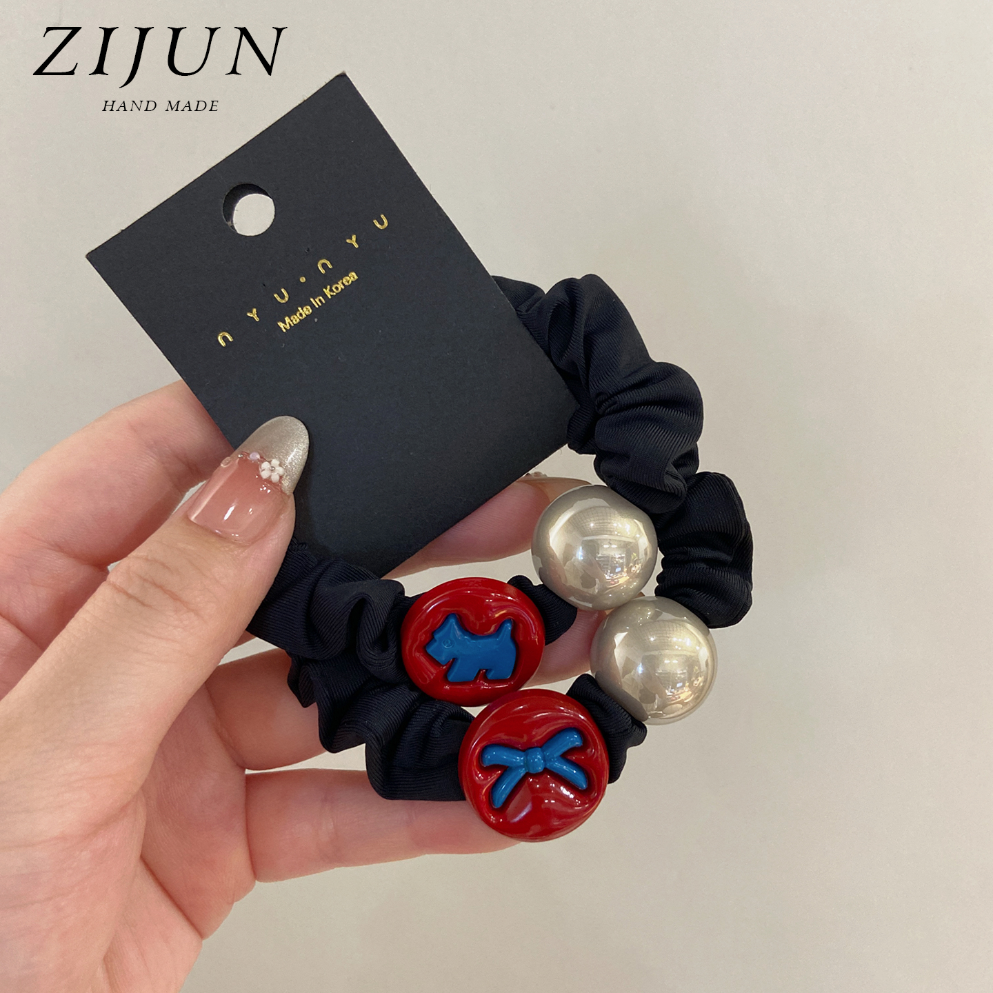 可爱撞色小狗珍珠小肠发圈头绳女