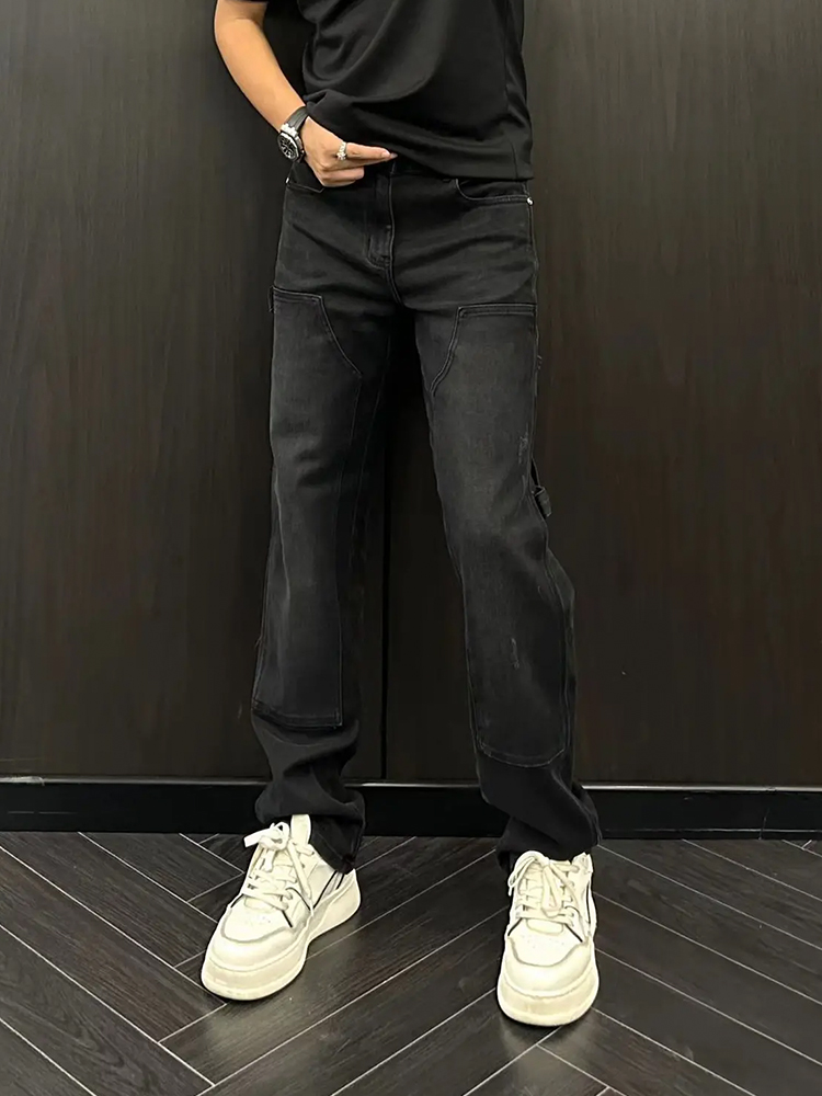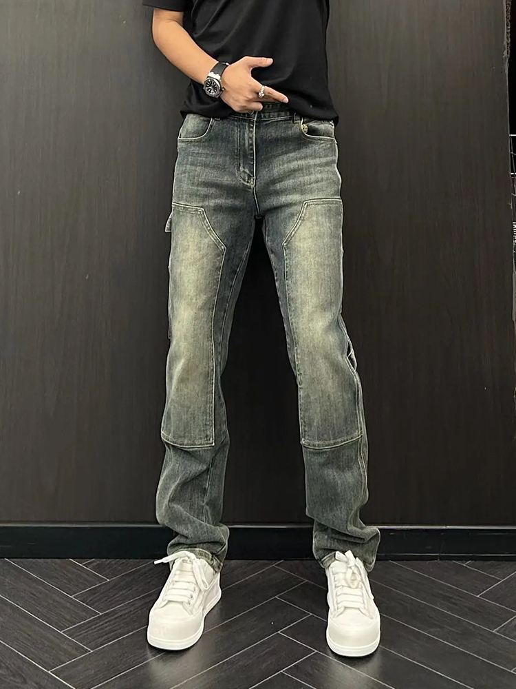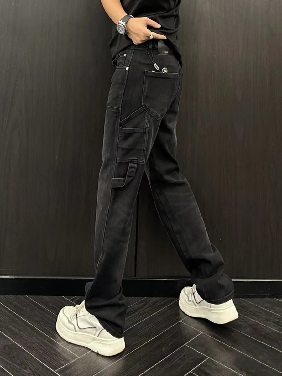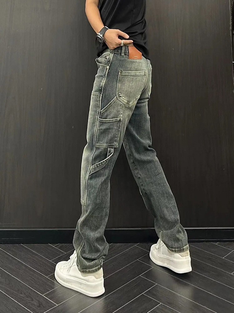 工装牛仔裤男士多口袋宽松直筒长裤水洗春夏新款复古百搭哈伦裤潮