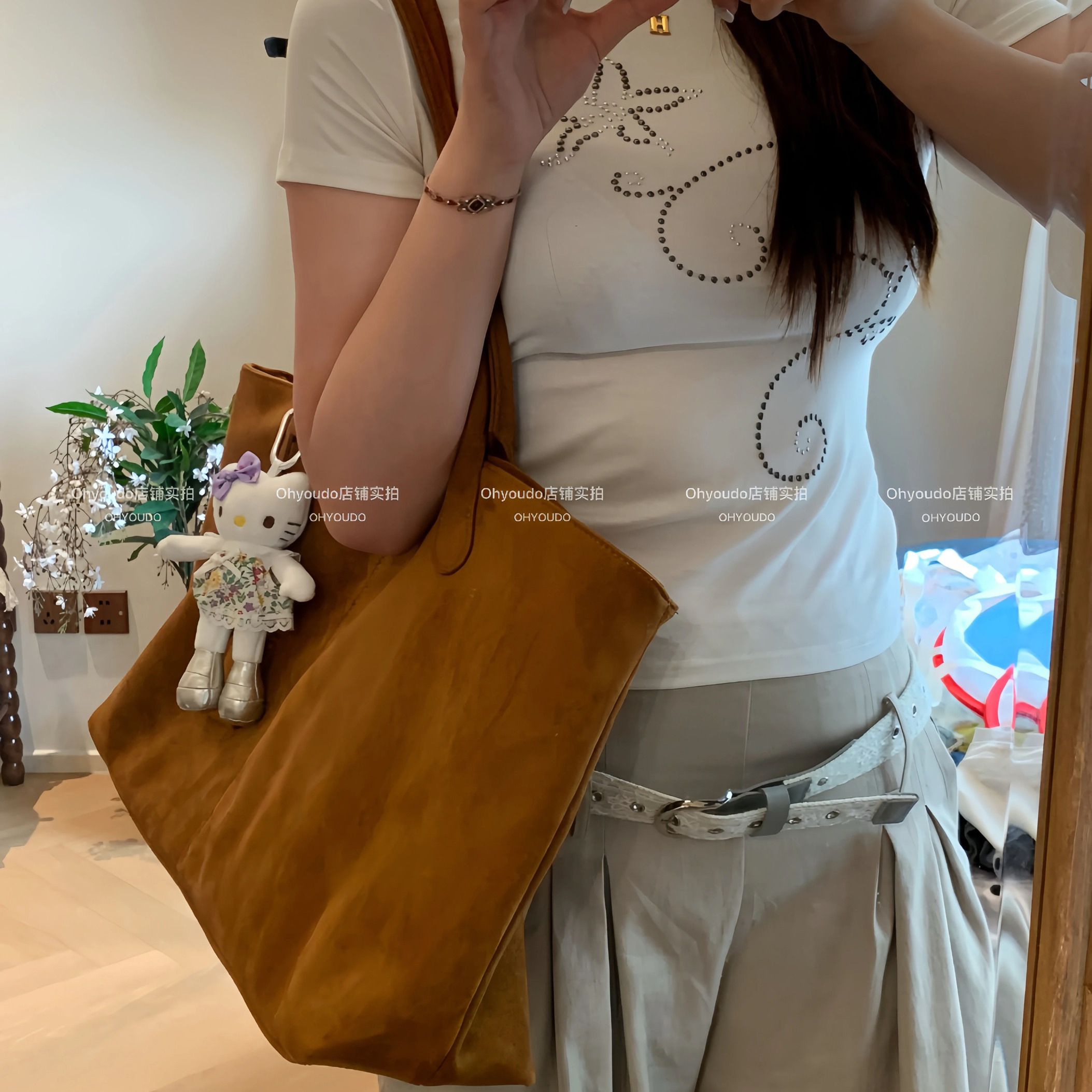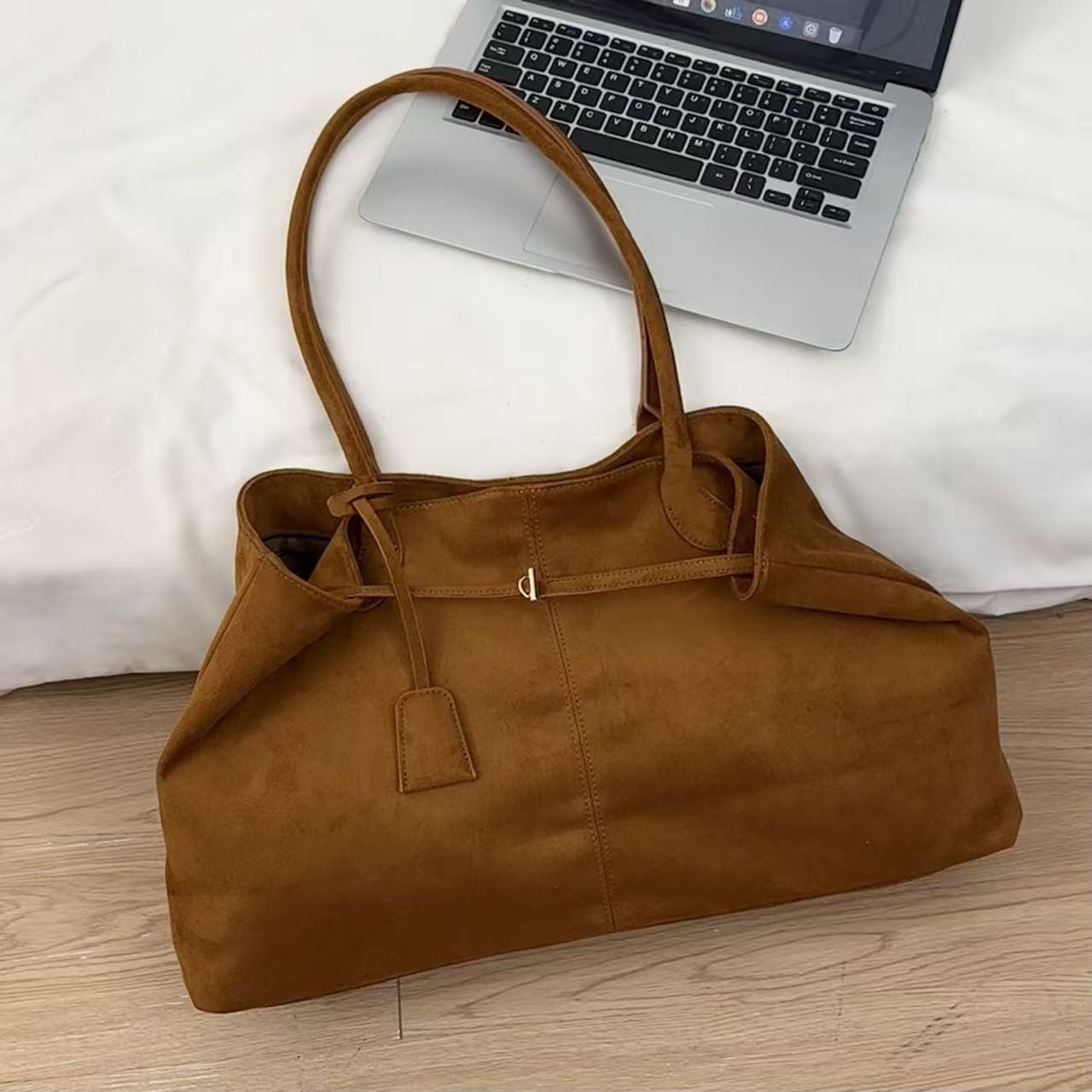 秋季麂皮绒腋下包包女2025新款潮韩国复古手提托特包大容量通勤包