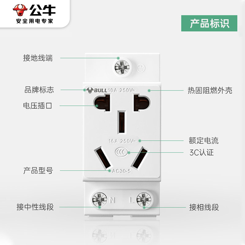 公牛导轨插座16安三孔五孔10a电表电箱内空气开关卡扣式轨道排插