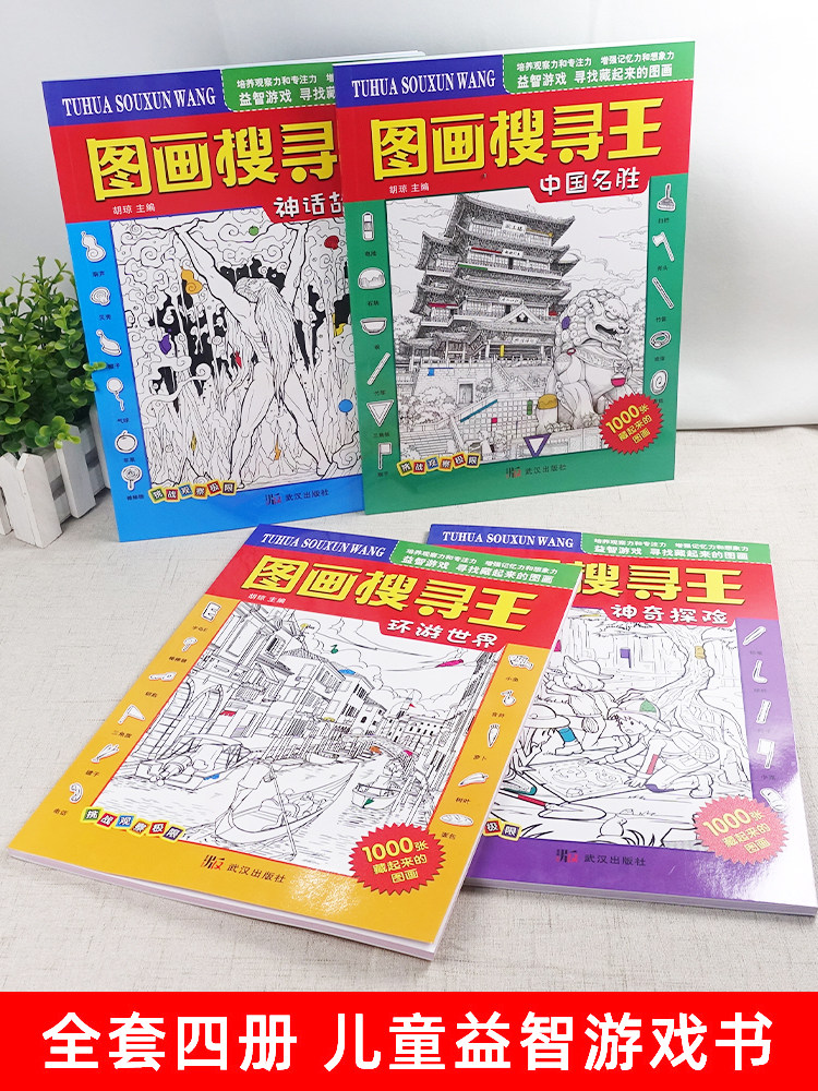 图画搜寻王全套4册大本隐藏的图画少儿3-6-8-9-12岁小学生儿童益智游戏书捉迷藏幼儿专注力训练书籍迷宫找不同极限视觉挑战图画书
