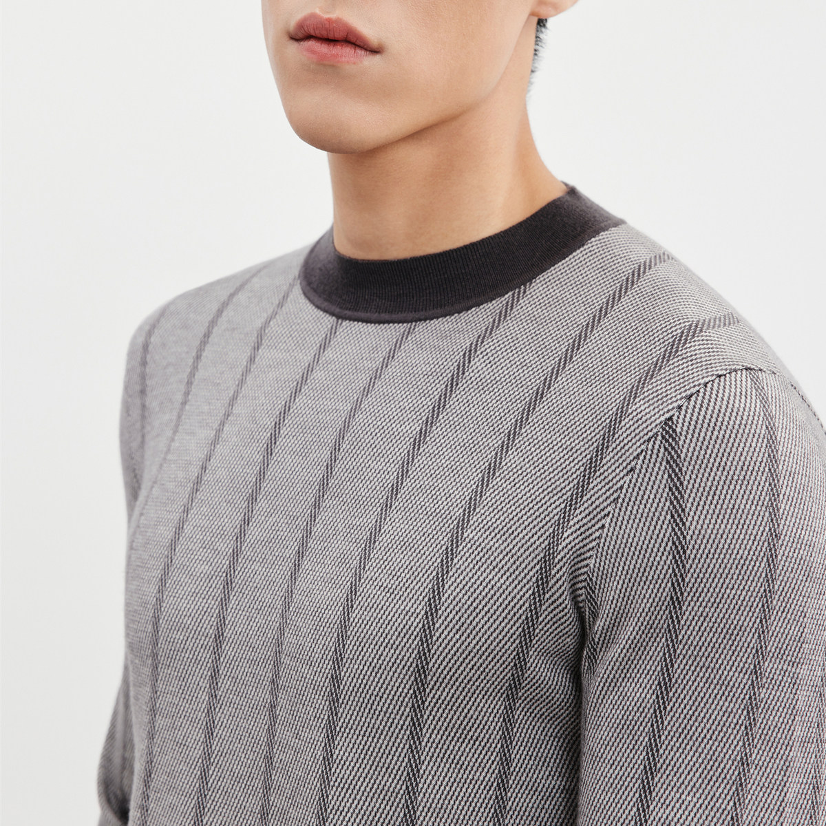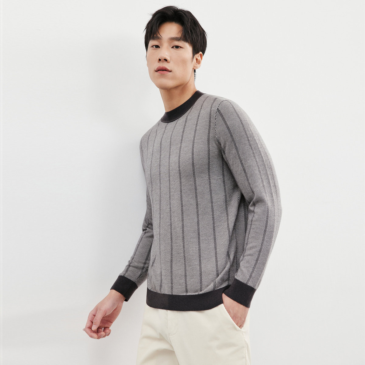 七匹狼毛衣男士2025新款春秋季条纹圆领打底针织羊毛衫中年男装潮