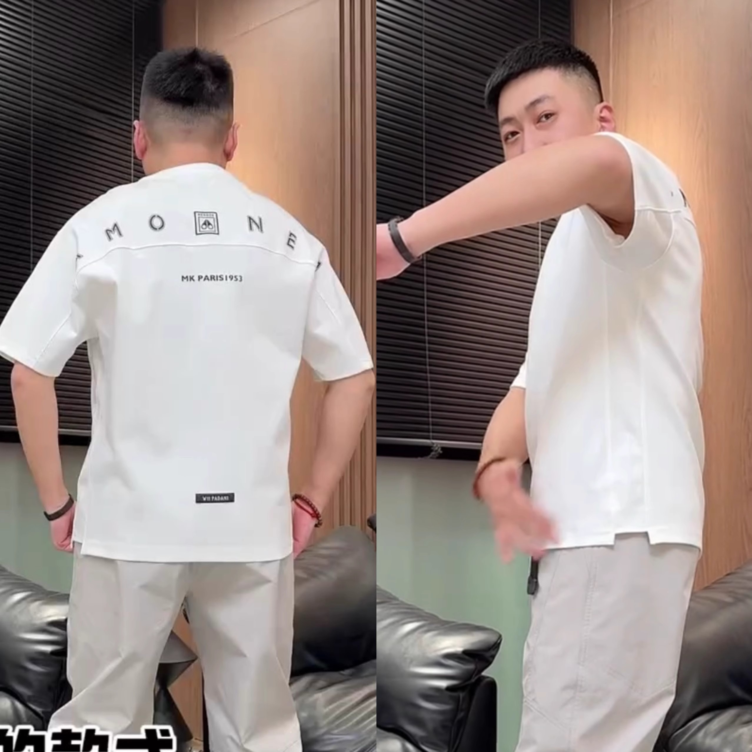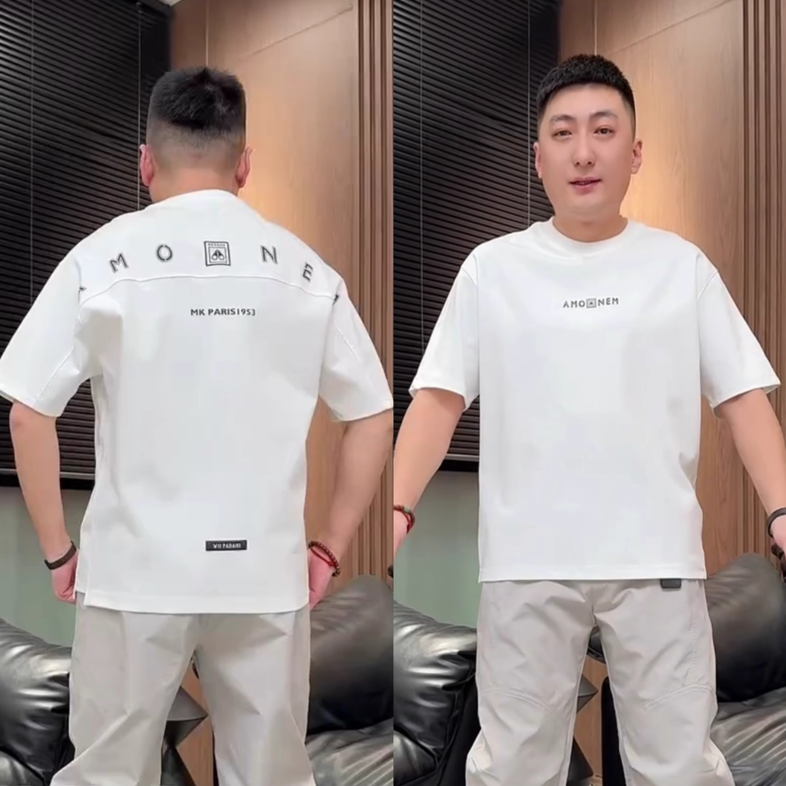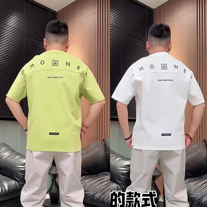 夏季新款简约字母侧开段圆领短袖T恤男百搭拼接宽松休闲半袖上衣