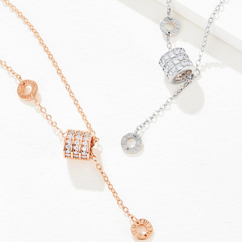 S999足银小蛮腰流苏满钻项链女士高级感吊坠精致锁骨链送女朋友