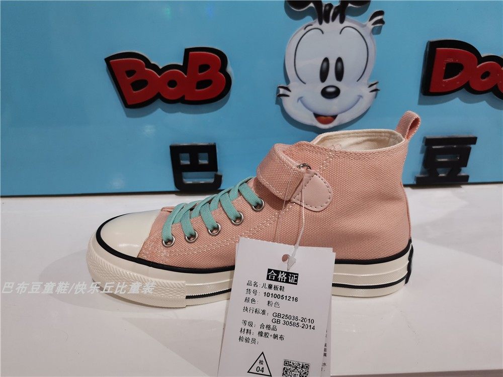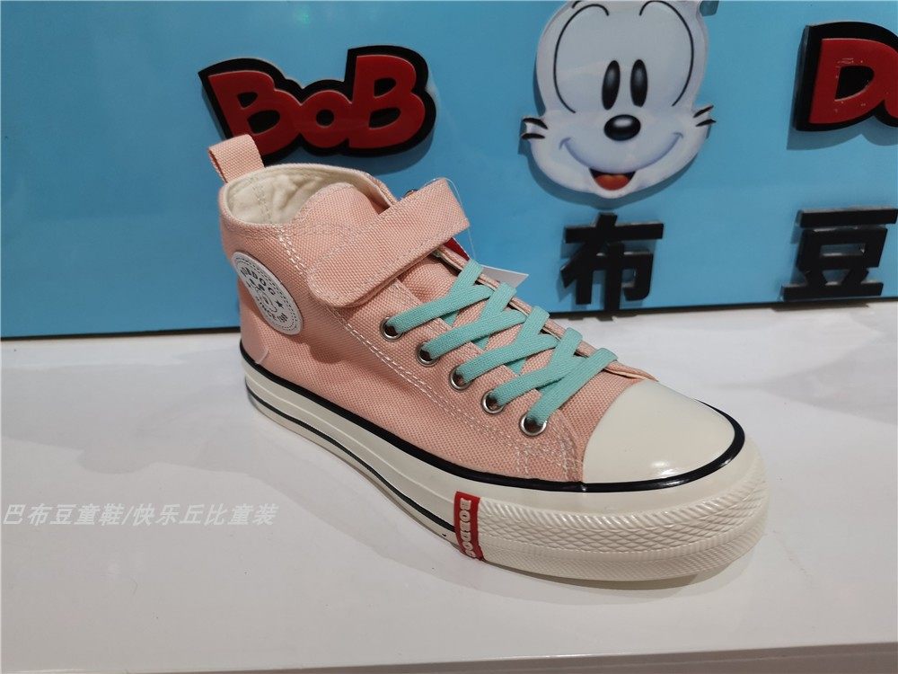 包邮专柜正品巴布豆童鞋男女童时尚 高帮帆布鞋休闲 板鞋51216
