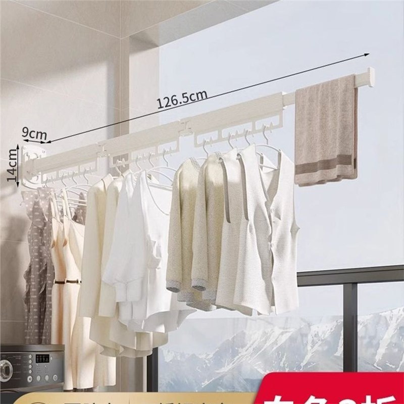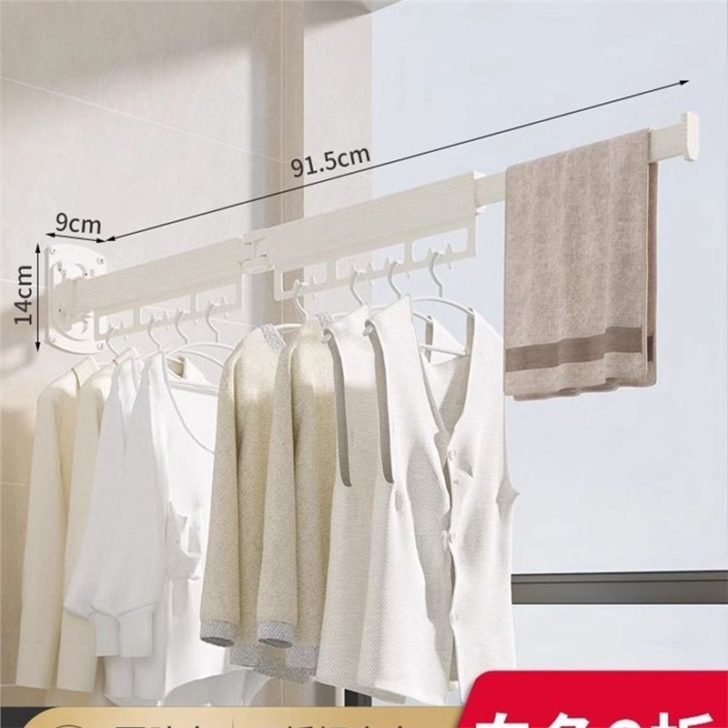 免打孔不锈钢折叠晾衣架阳台家用壁挂隐形可拆卸易U清洗收缩凉衣