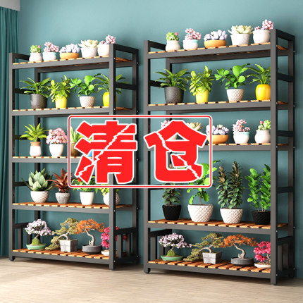 实木铁艺花架置物架阳台多层架子多肉收纳架客厅花店展示架落地式